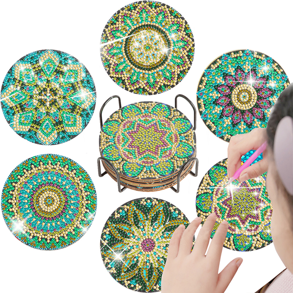 6pcs DIY Mandala Anti Slip Coasters Stackable Creative for Tabletop Protection
