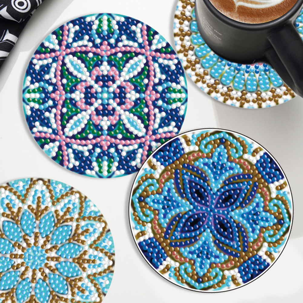 6pcs DIY Mandala Diamond Crafts Coasters with Holder Wooden DIY Coaster