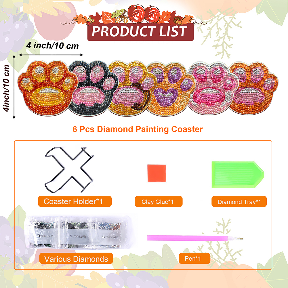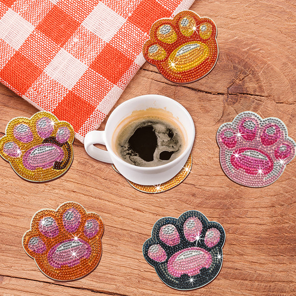 6pcs Dog Paw DIY Crystal Drink Coasters Ornament Cup Coasters for Adults Kids