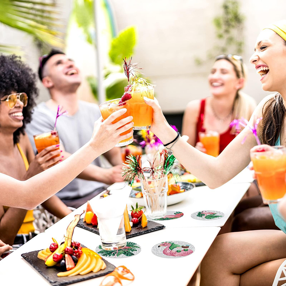 8pcs DIY Flamingo Art Acrylic Diamond Painting DIY Coaster for Adults Kids