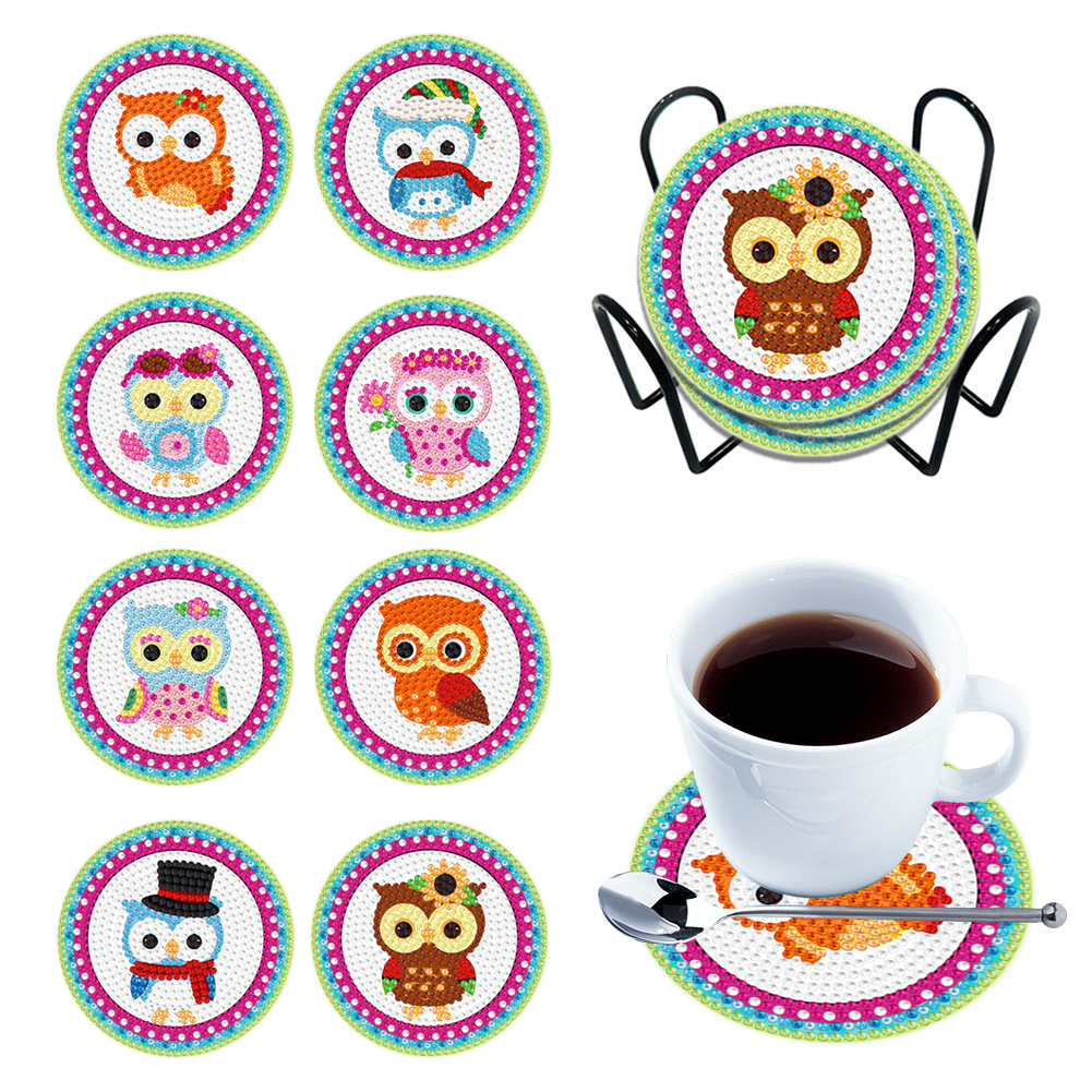 DIY Acrylic Diamond Coaster Set Animal Style (8 Piece Set 1 Rack)