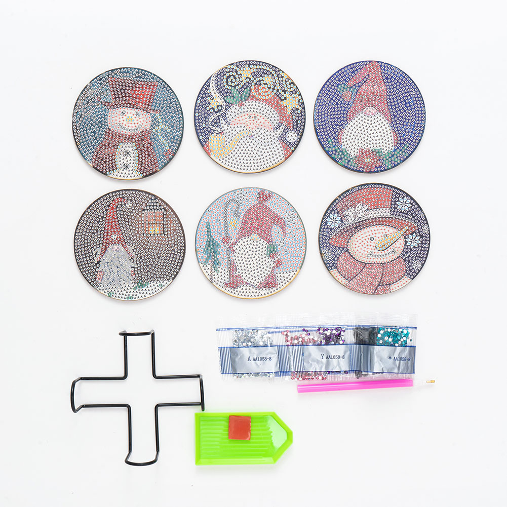 6pcs DIY Point Drill Coaster Christmas Style with Mat Shelf Kits(Wooden)