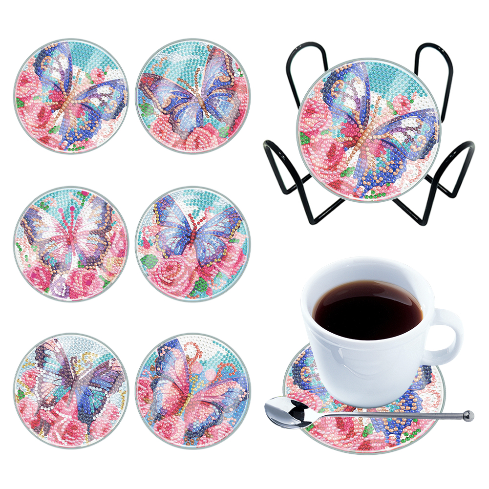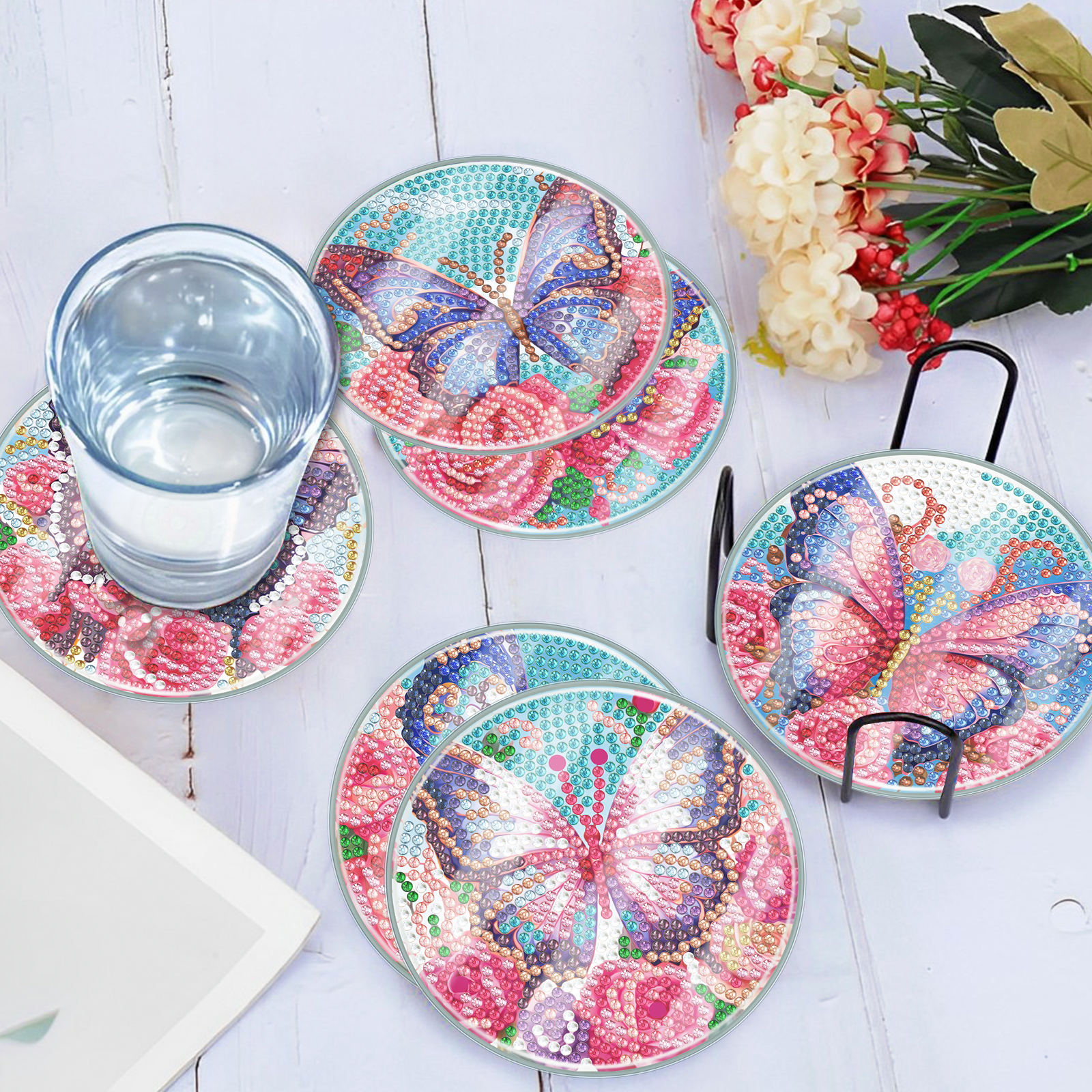 [Upgrade - Waterproof Coaster]6pcs DIY Butterfly Set Holiday Christmas for Adults and Beginners(With Covers)