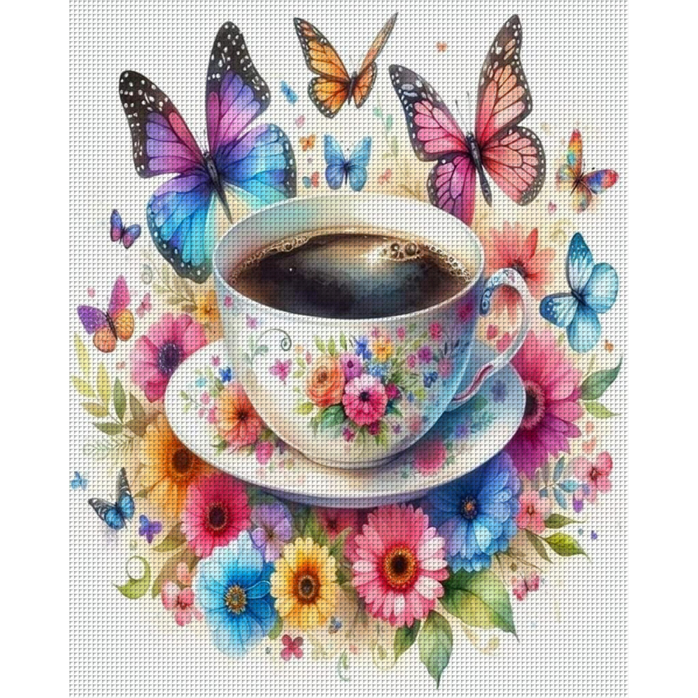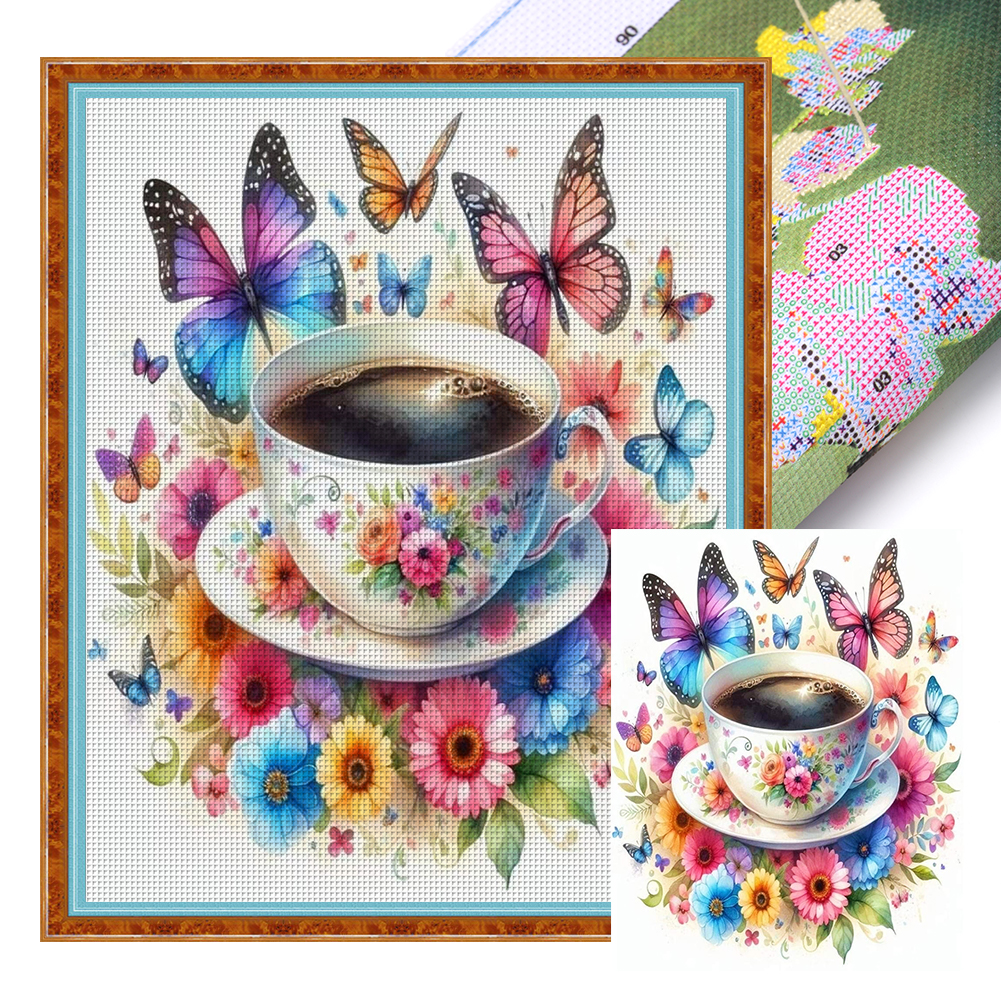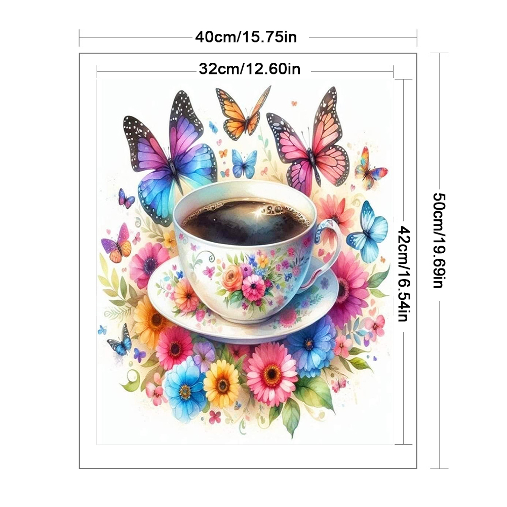 11CT Full Stamped Cross Stitch - Flower Butterfly Coffee(Canvas|40*50CM)