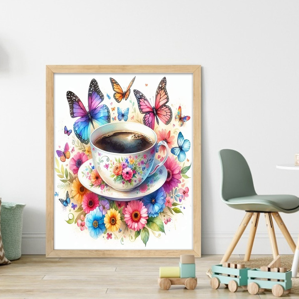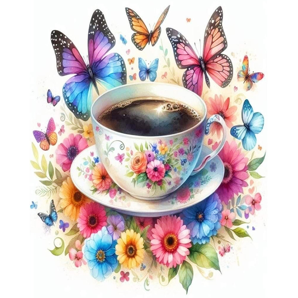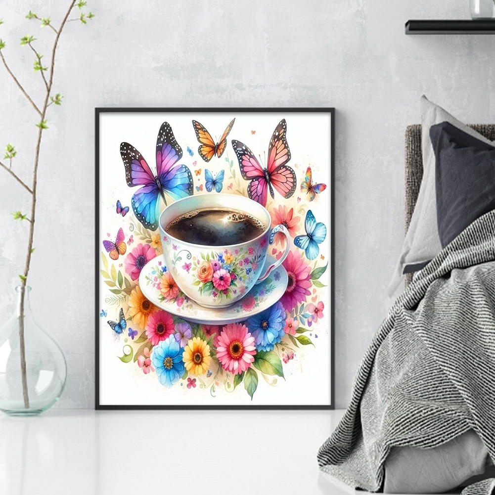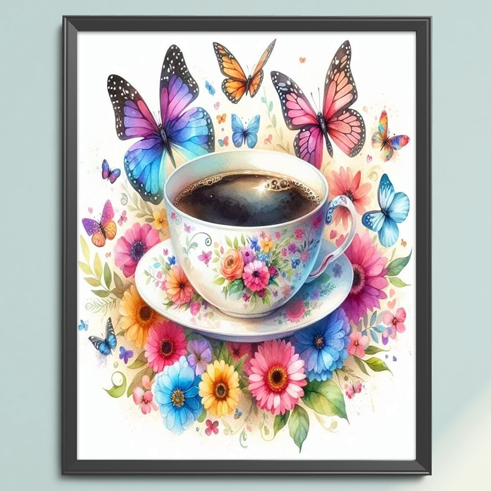 11CT Full Stamped Cross Stitch - Flower Butterfly Coffee(Canvas|40*50CM)