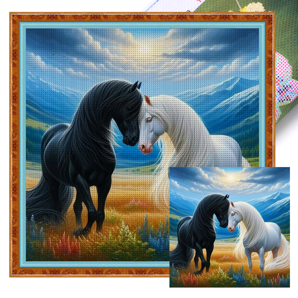 11CT Full Stamped Cross Stitch - Horses(Canvas|45*45CM)