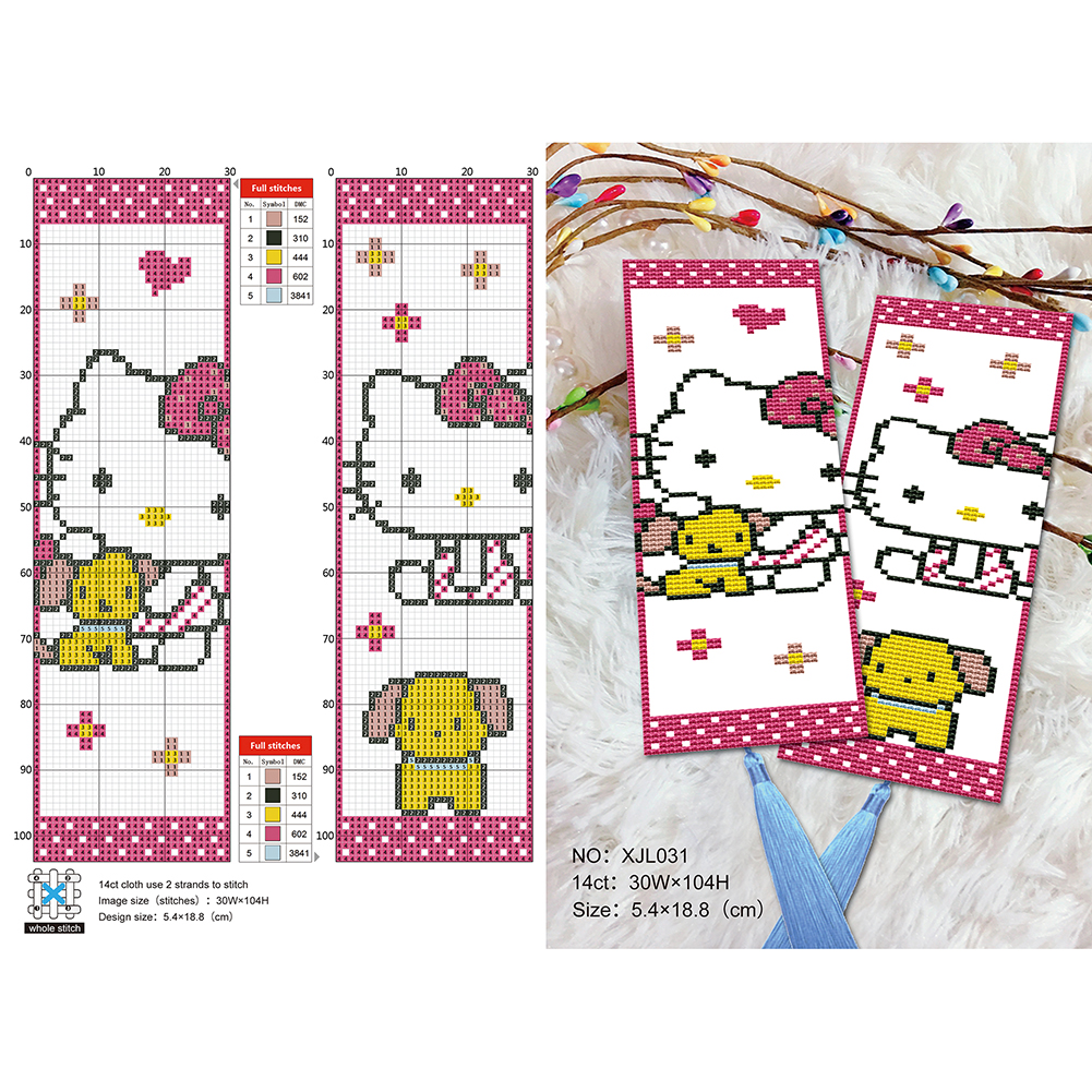 14ct 2-Strand Double-sided Counted Cross Stitch Bookmark - Kitty(18*6cm)
