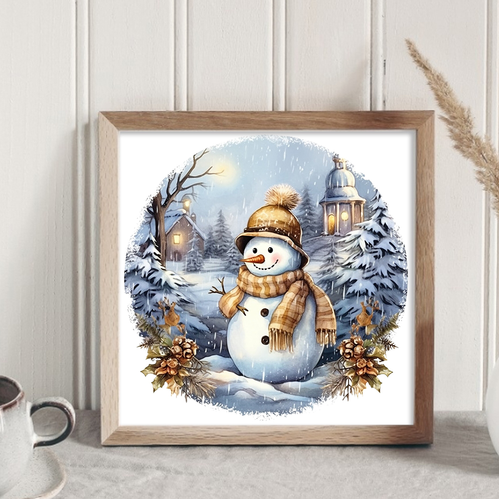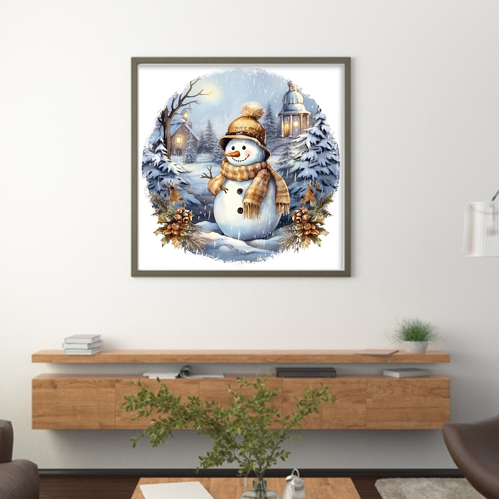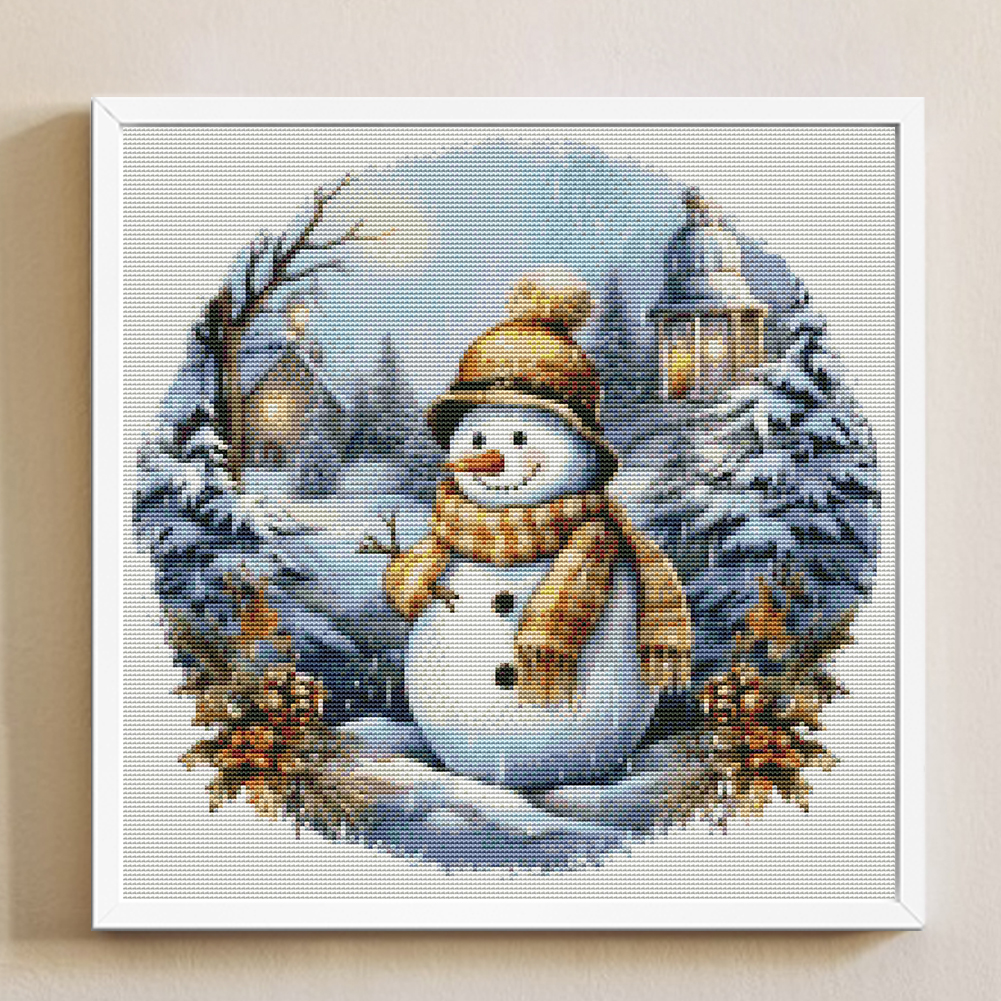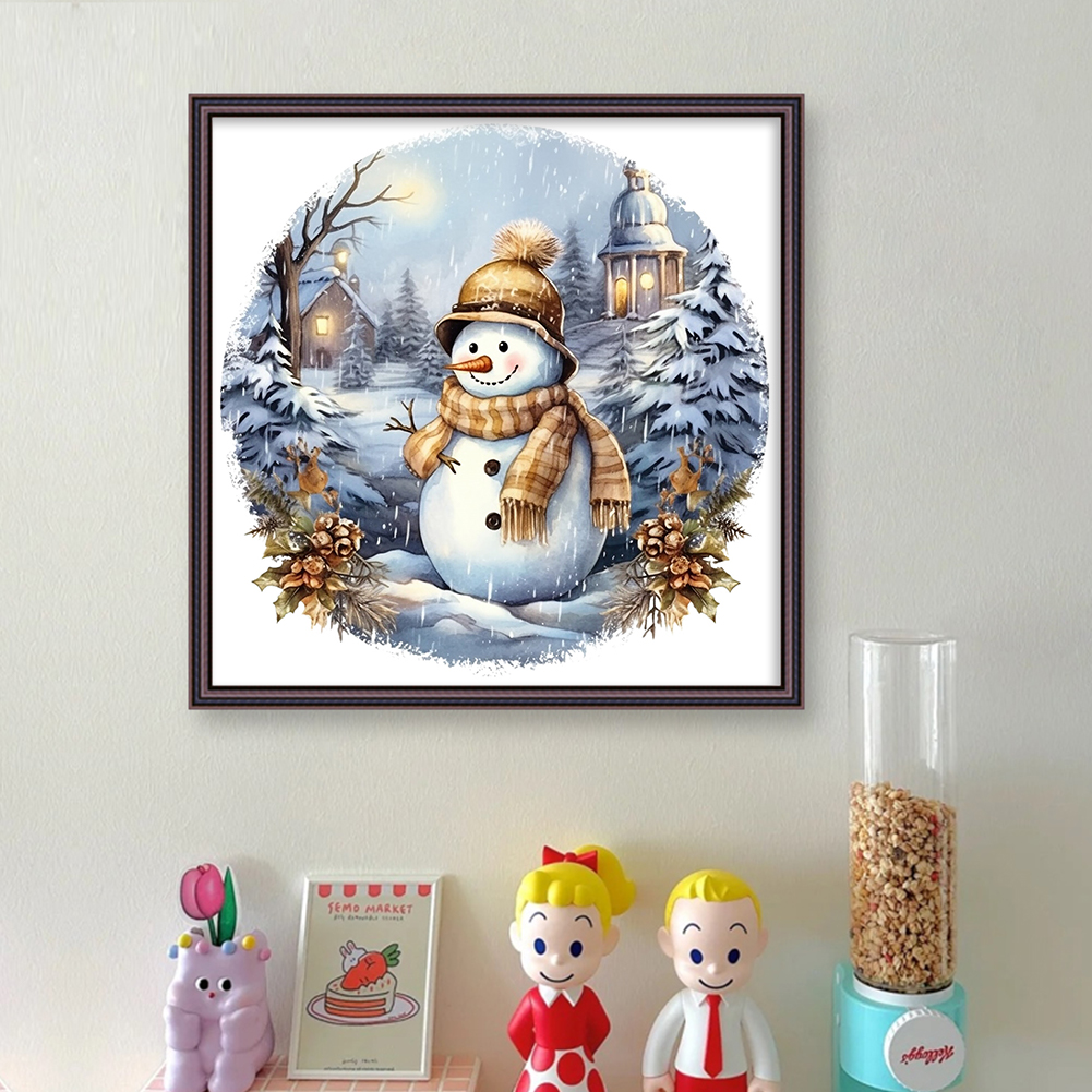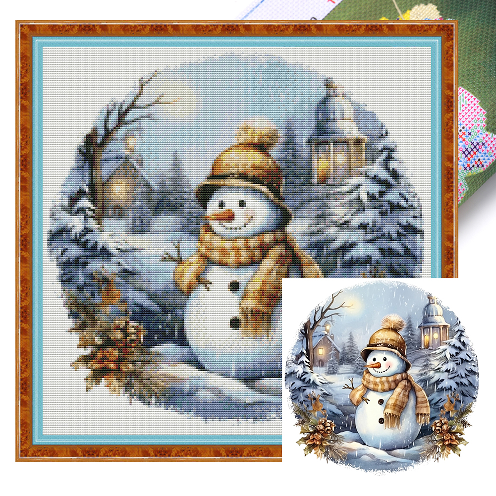 18CT Full Stamped Cross Stitch - Snowmen(Canvas|30*30CM)