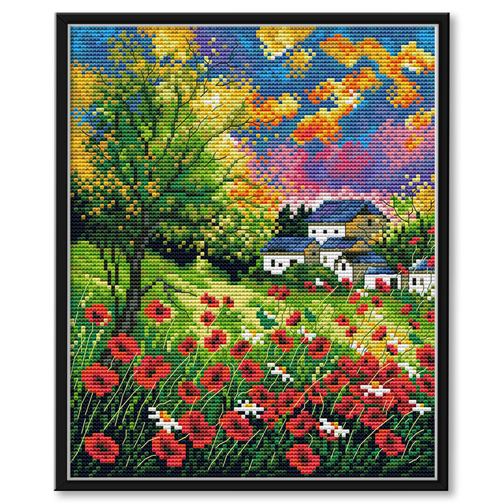 14CT Stamped Cross Stitch - Mountain Flower(Canvas|30*26CM)