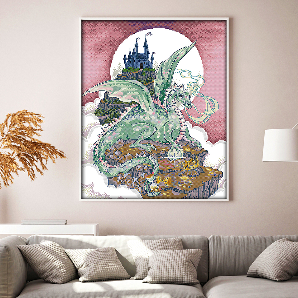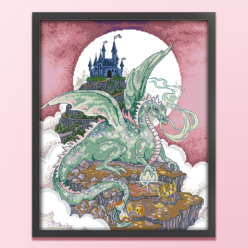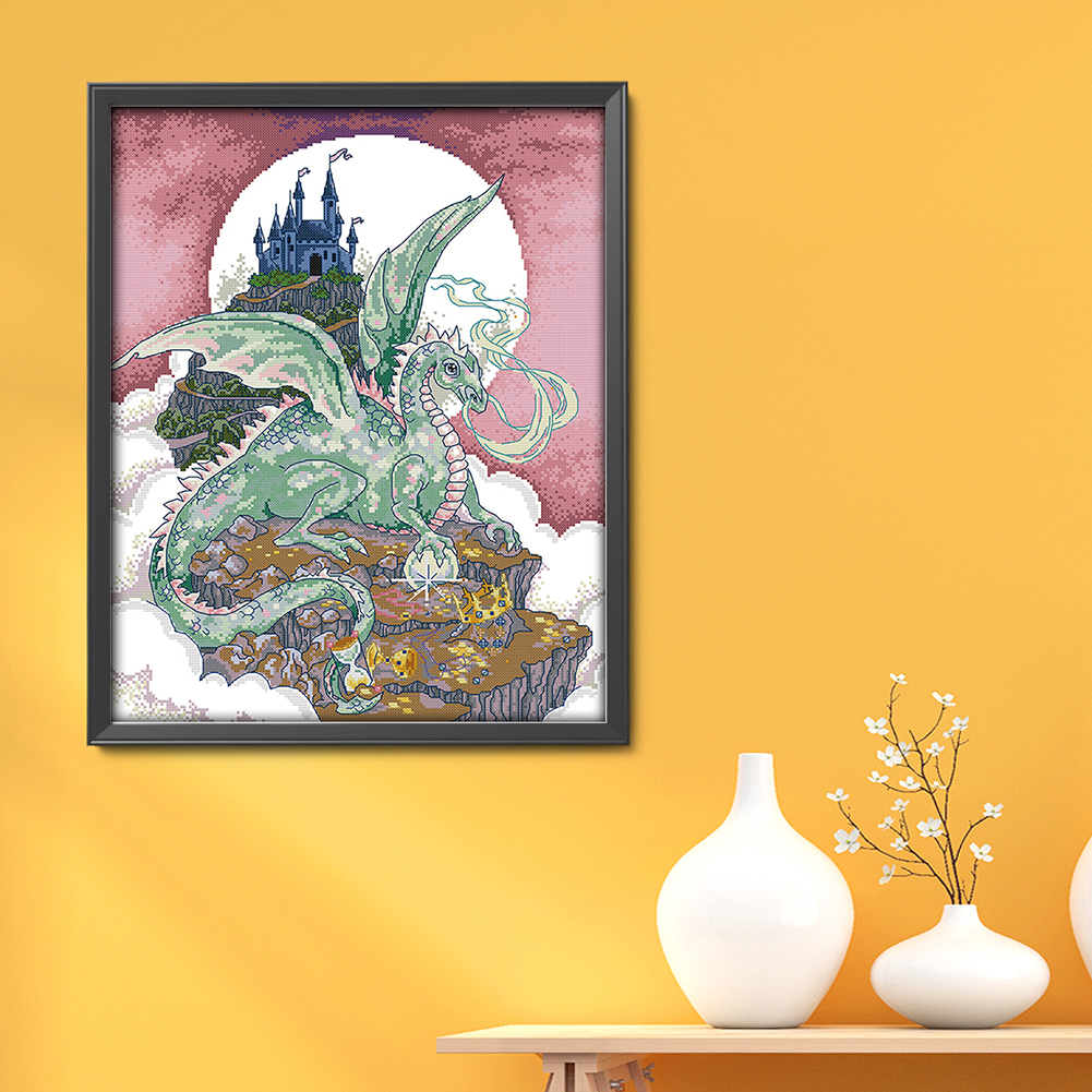 DIY Stamped Cross Stitch 14CT Partial Embroidery 40*49cm - Castle Guardian