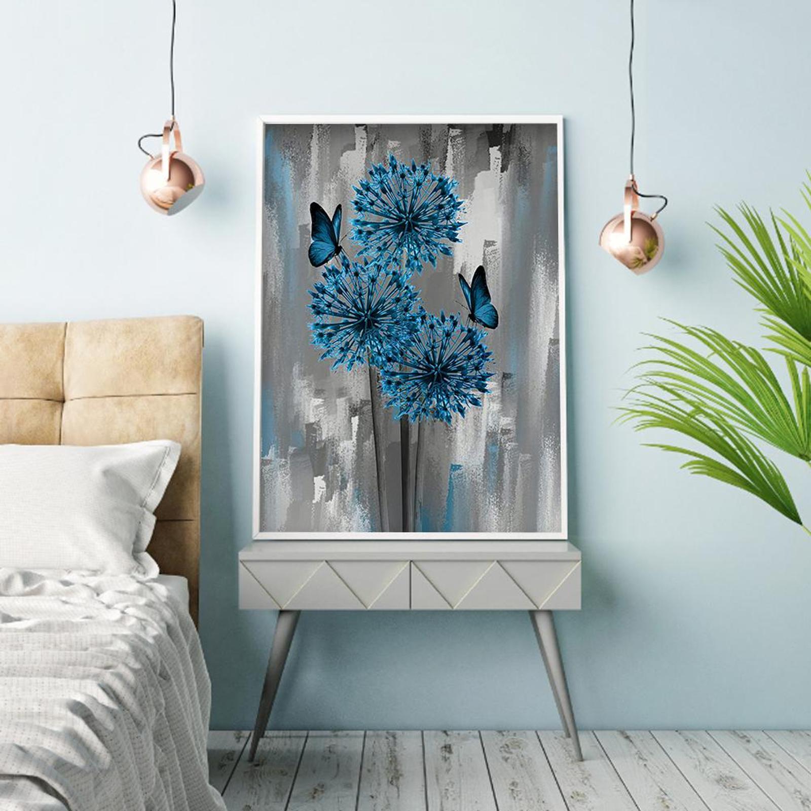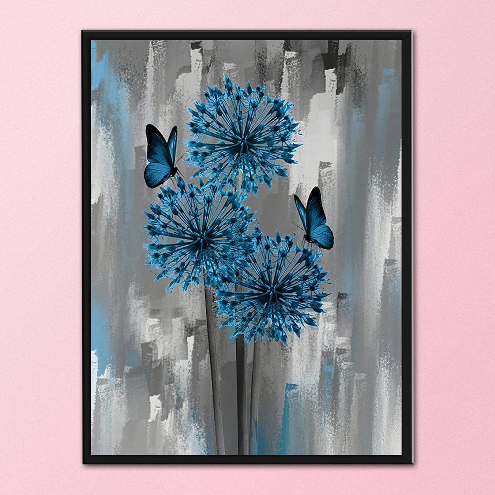 11CT 3 Strands Printed DIY Blue Flowers Stamped Cross Stitch Cotton Thread Needlework Set Full Embroidery Kits Art Needlework Home Decoration Gift