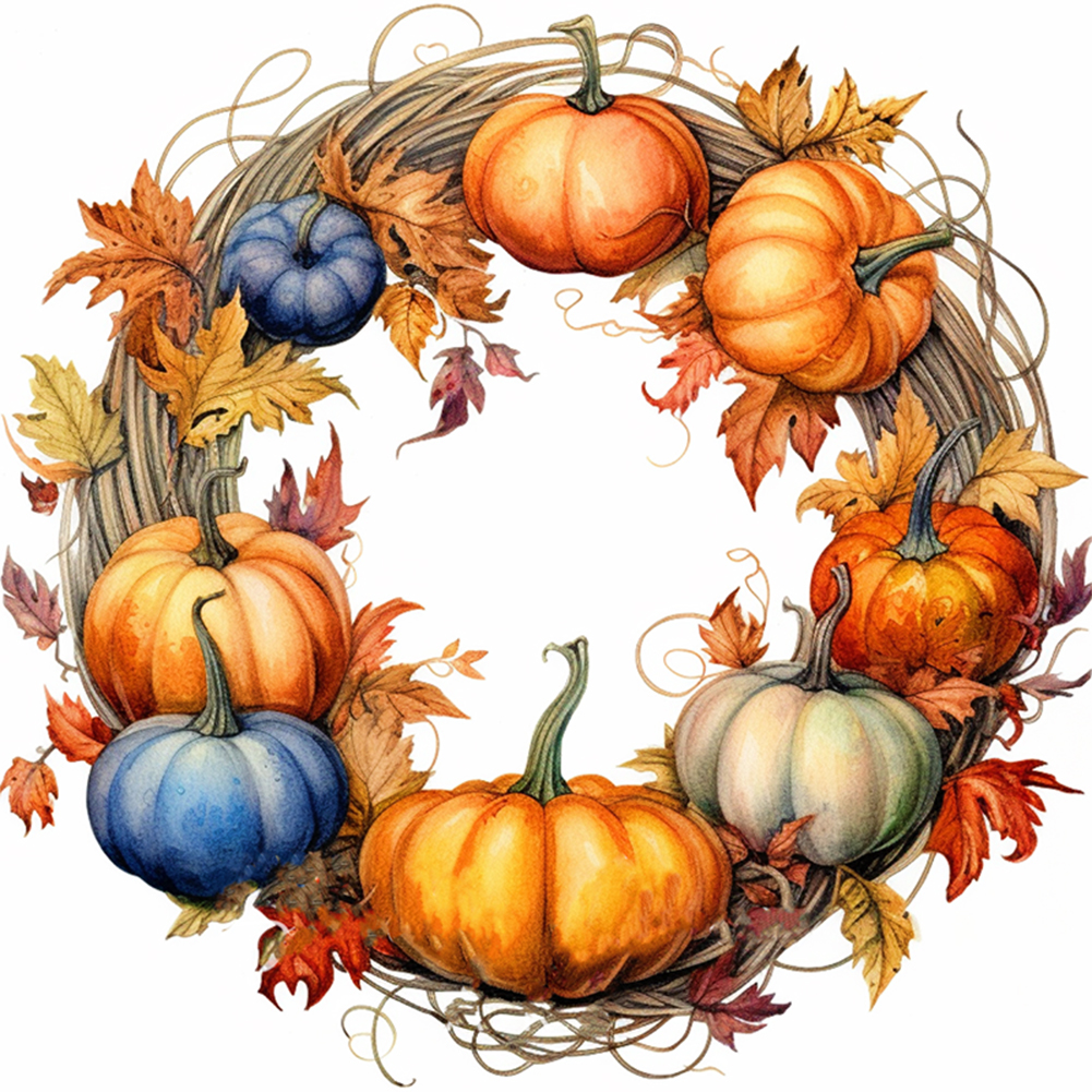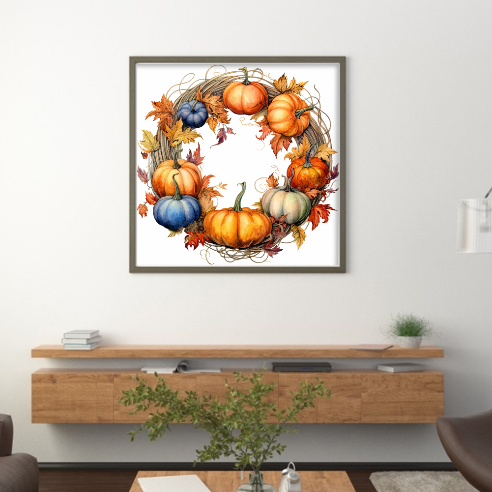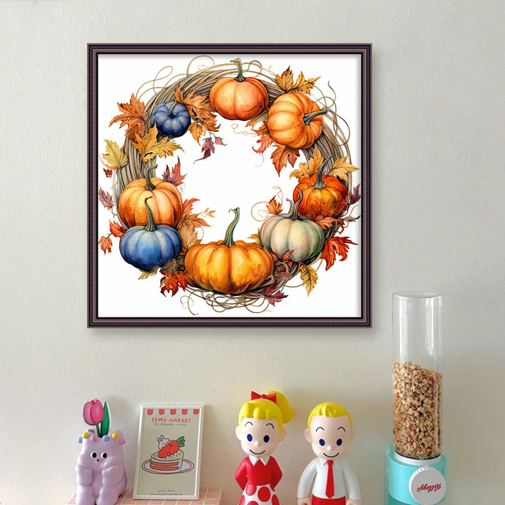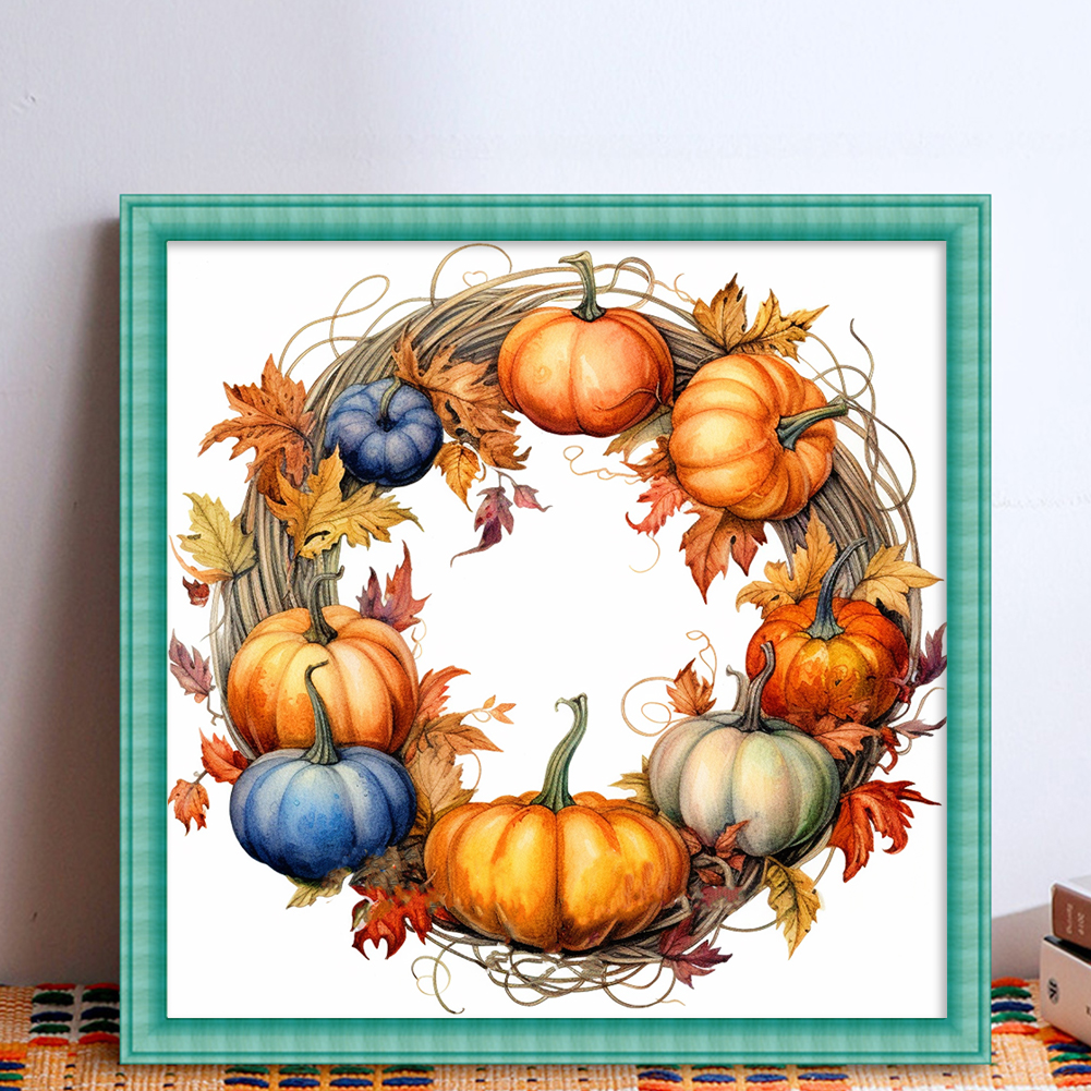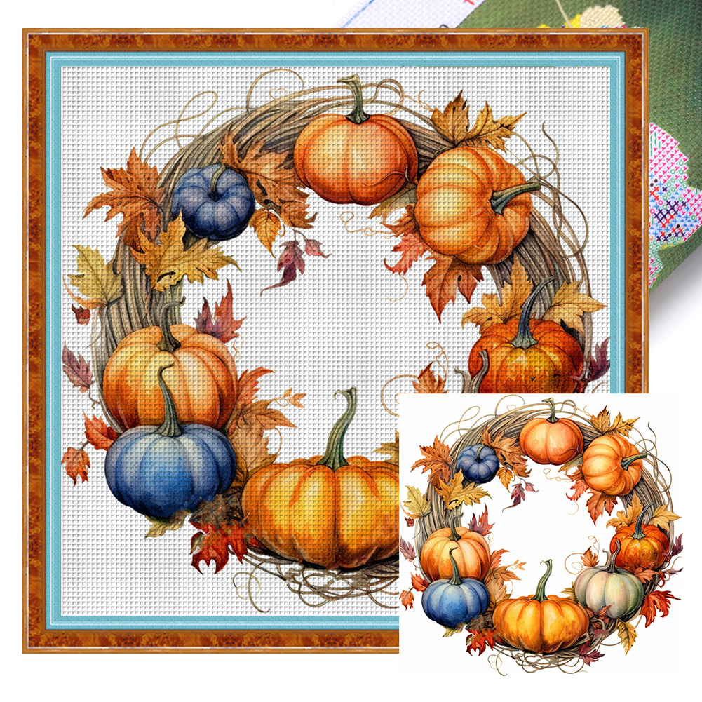 DIY Stamped Cross Stitch 11CT Full Embroidery 40*40cm - Fall Pumpkin Wreath
