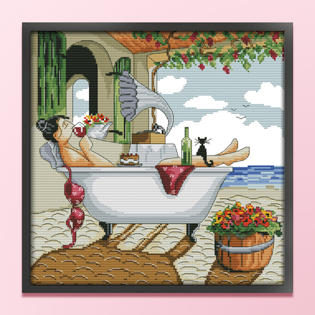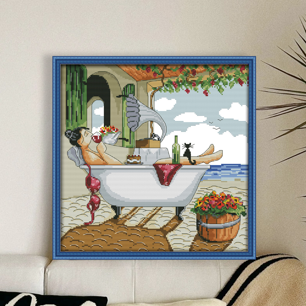DIY Stamped Cross Stitch 14CT Full Embroidery 35*35cm - Enjoy Life