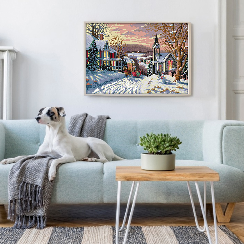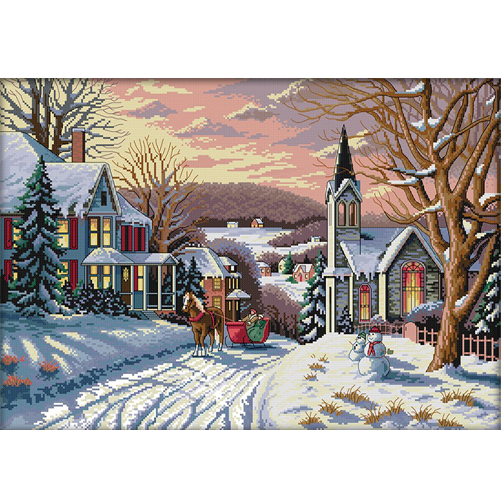DIY Stamped Cross Stitch 14CT Full Embroidery 58*44cm - Snow Scene