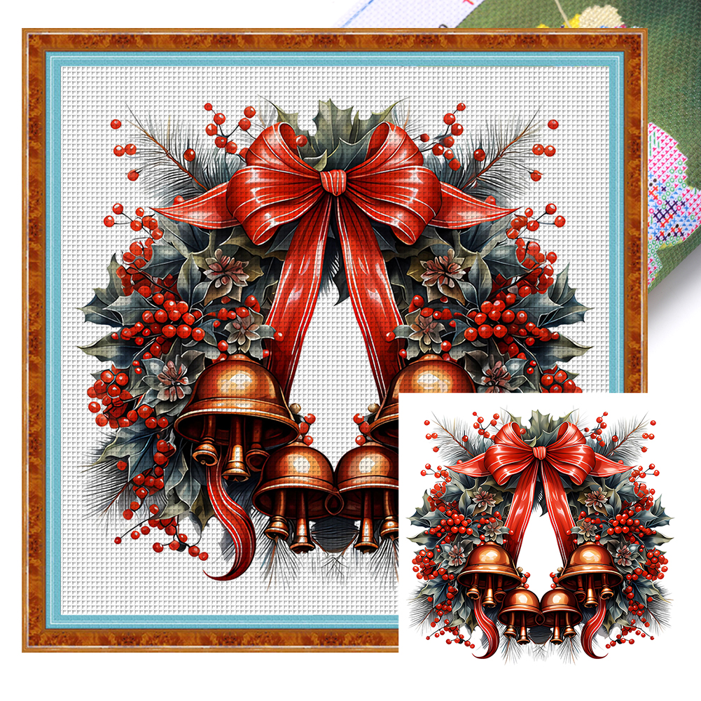 DIY Stamped Cross Stitch 18CT Full Embroidery 30*30cm - Christmas Wreath