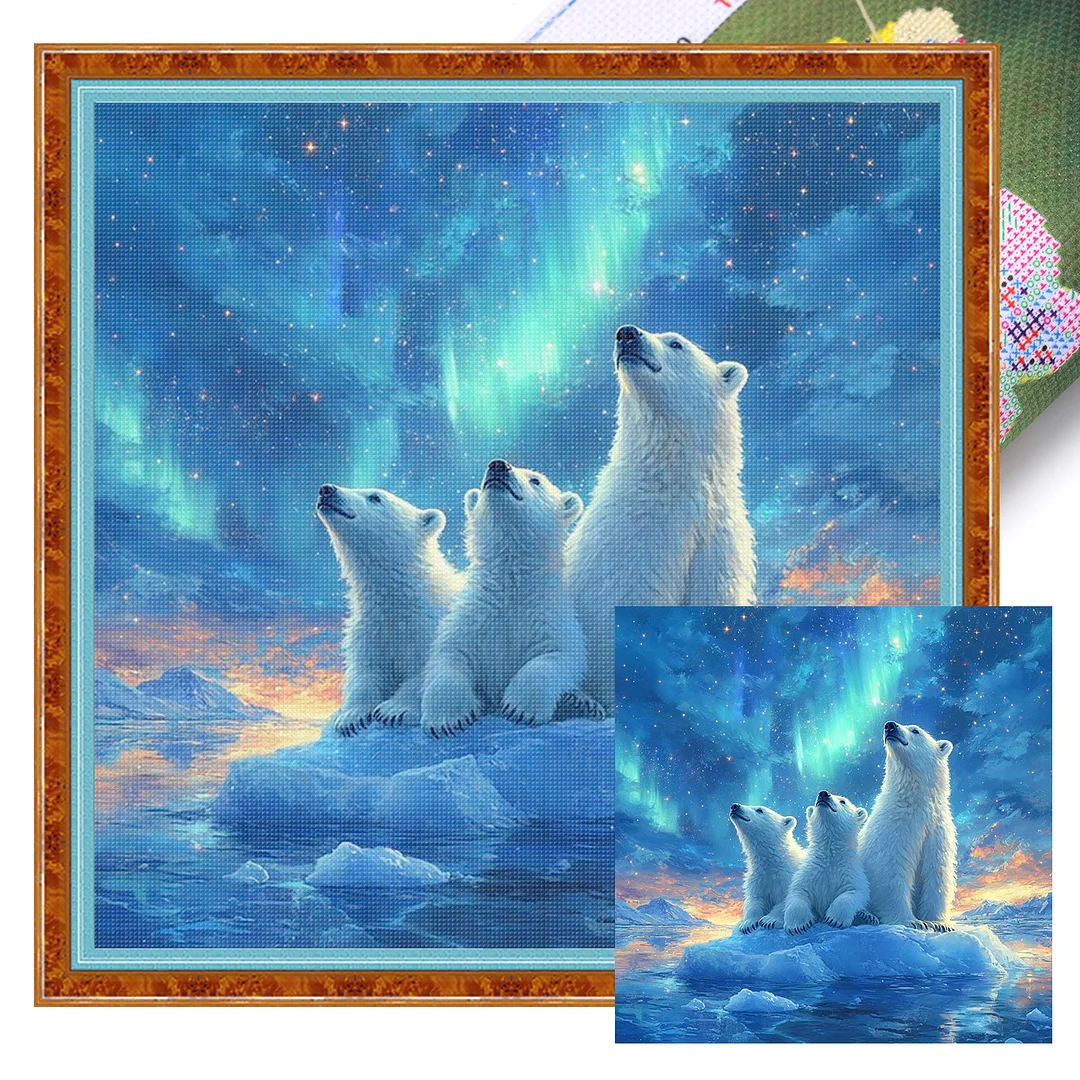 Polar Bear Full 11CT DIY Stamped Cross Stitch Kits for Adults Home Decor 45x45cm