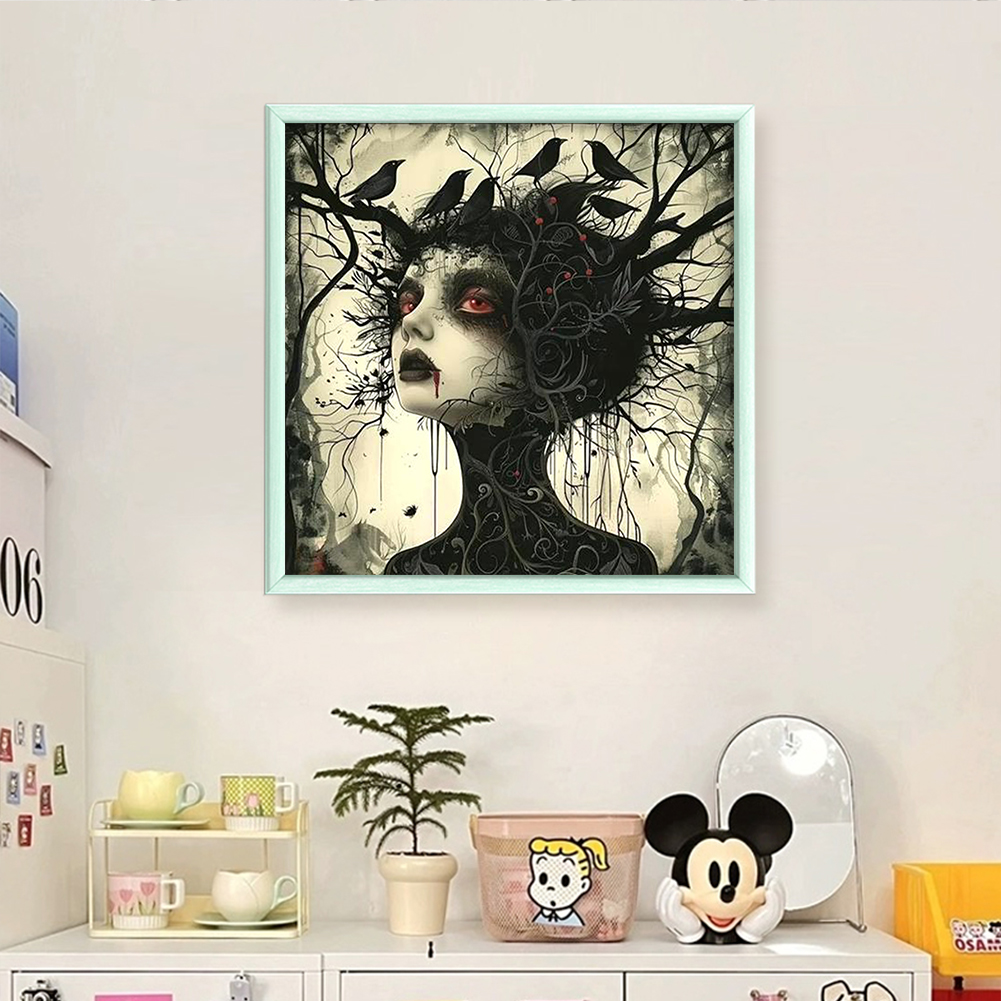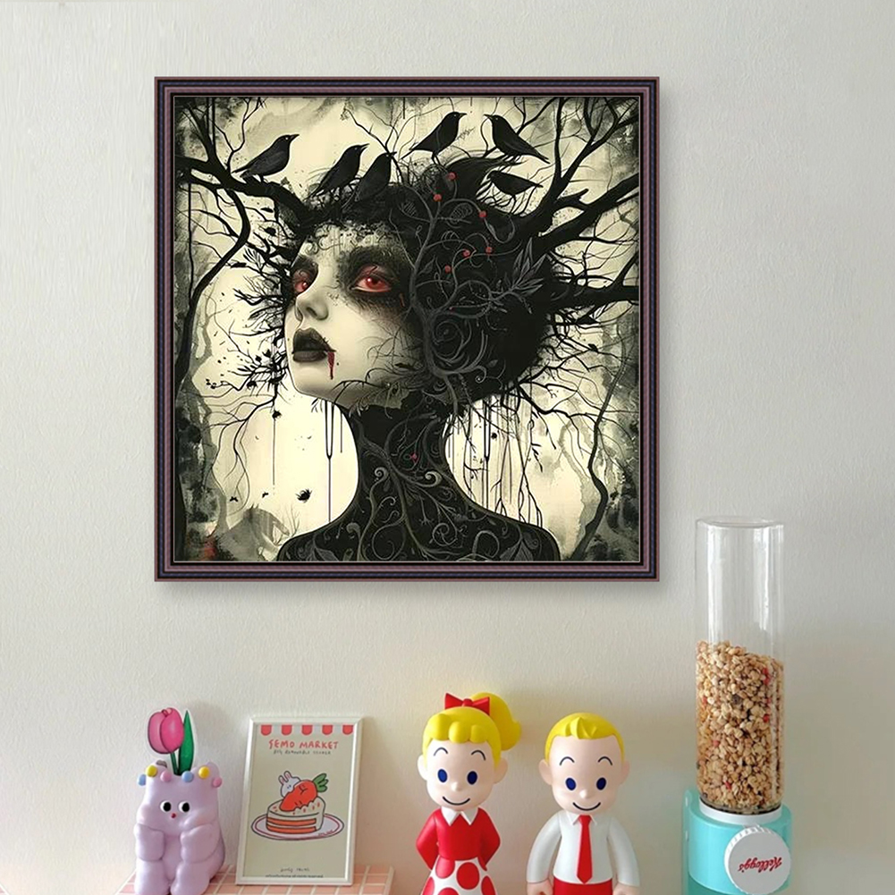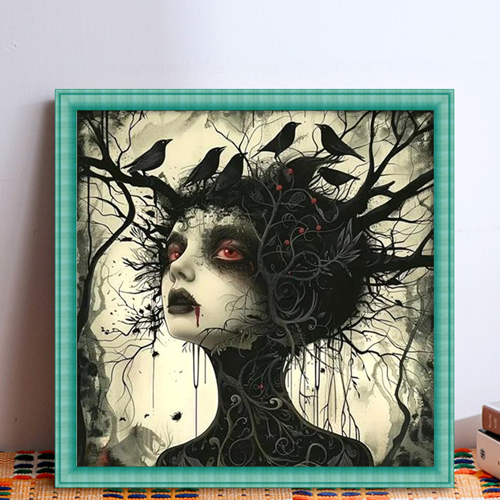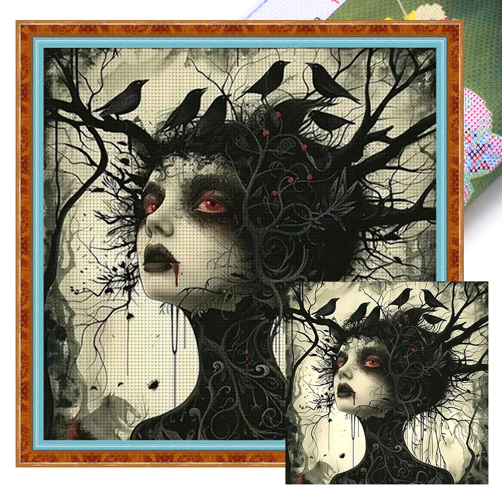 11CT Full Stamped Cross Stitch - Crow Girl(Canvas|40*40CM)