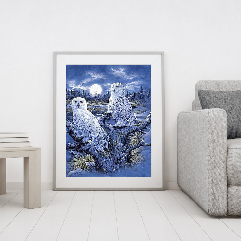 40x50cm Full Embroidery Eco-cotton Thread 11CT Stamped Print DIY Owl Bird Handmade Cross Stitch Artwork Canvas Kit Needlework Home Decor Ornaments Craft
