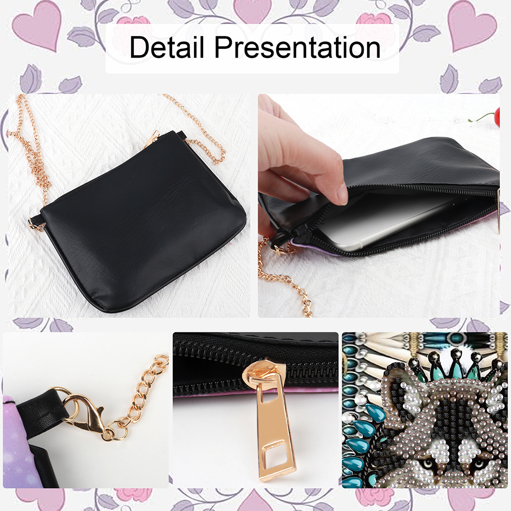 5. Practical Functionality: The 5D diamond painting crossbody chain bag combines style with practicality, offering both aesthetic appeal and functional use for everyday or special events.