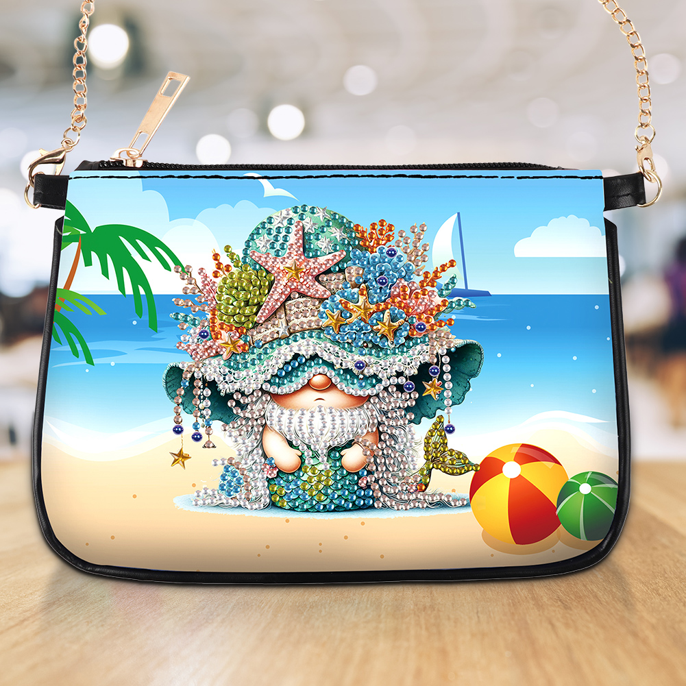 Beach Gnome Diamond Painting Coin Chain Purse 5D DIY Diamond Handmade Chain Bag