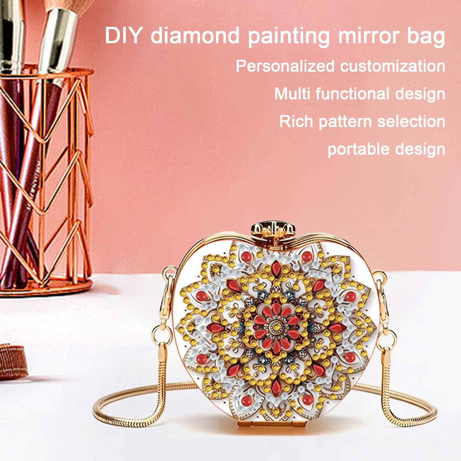 The DIY Diamond Painting Mirror Clutch is a craft product that combines practicality with artistic appeal, designed specifically for users who enjoy DIY projects and personalized customization.