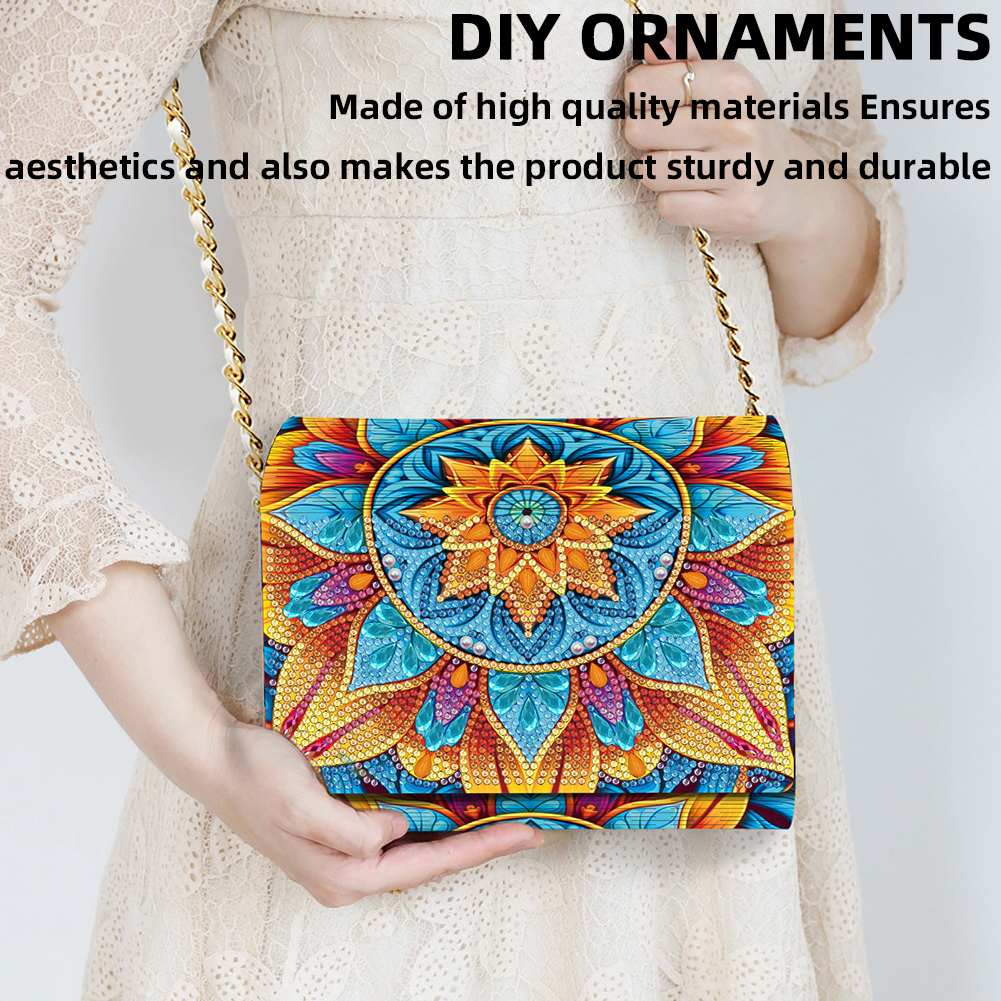 DIY Mandala Diamond Art Wooden Coin Pouch with Chain 5D Diamond Painting Purse