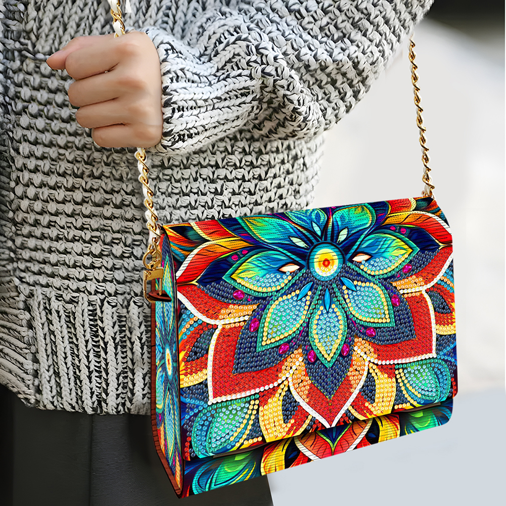 DIY Mandala Diamond Art Wooden Coin Pouch with Chain 5D Diamond Painting Purse