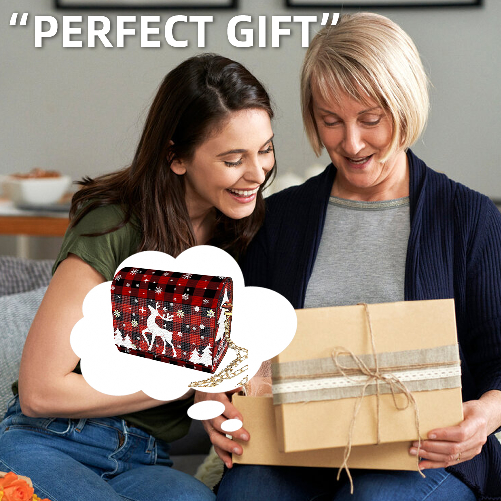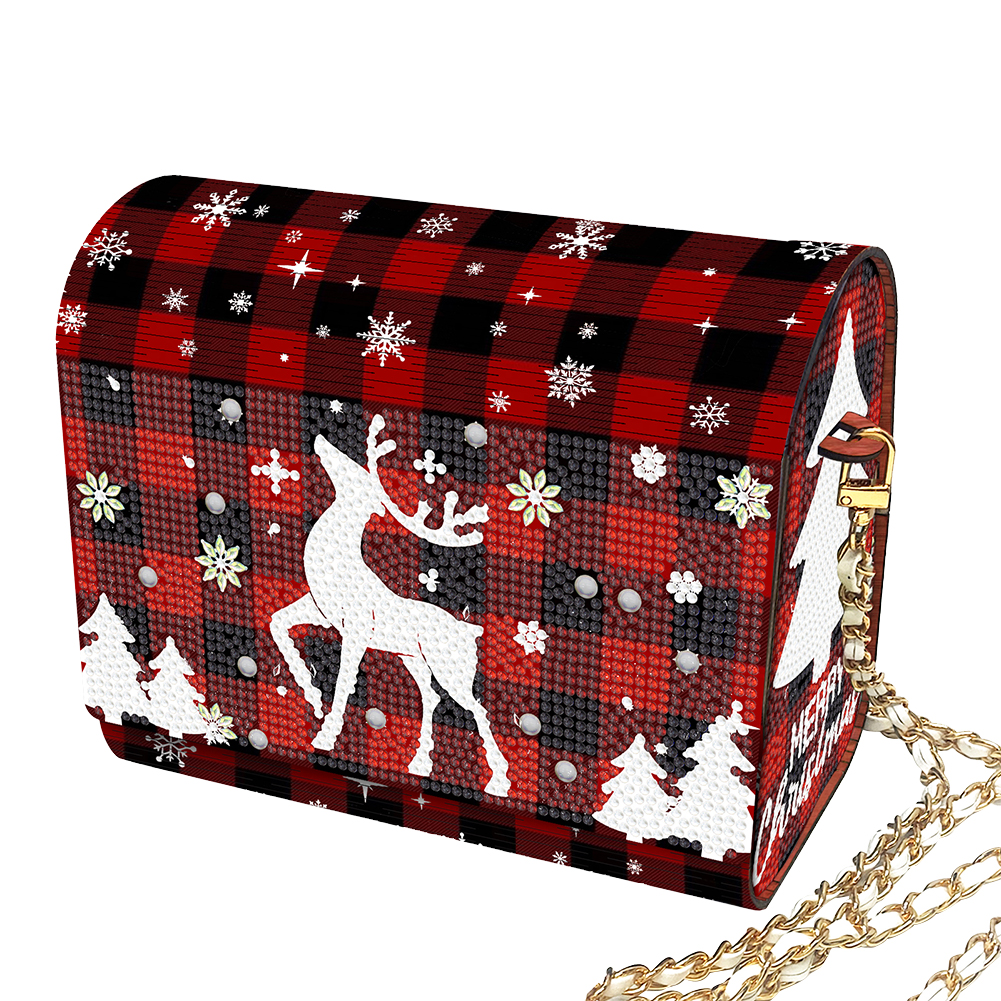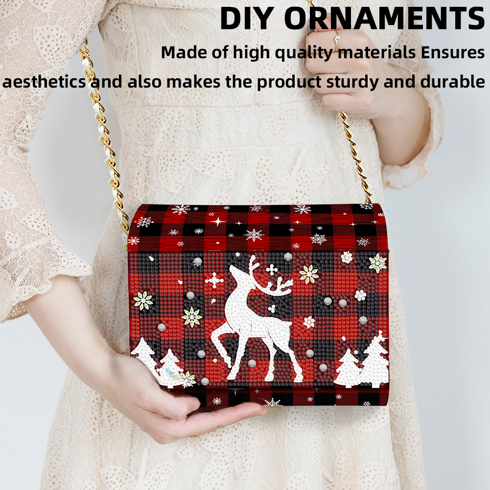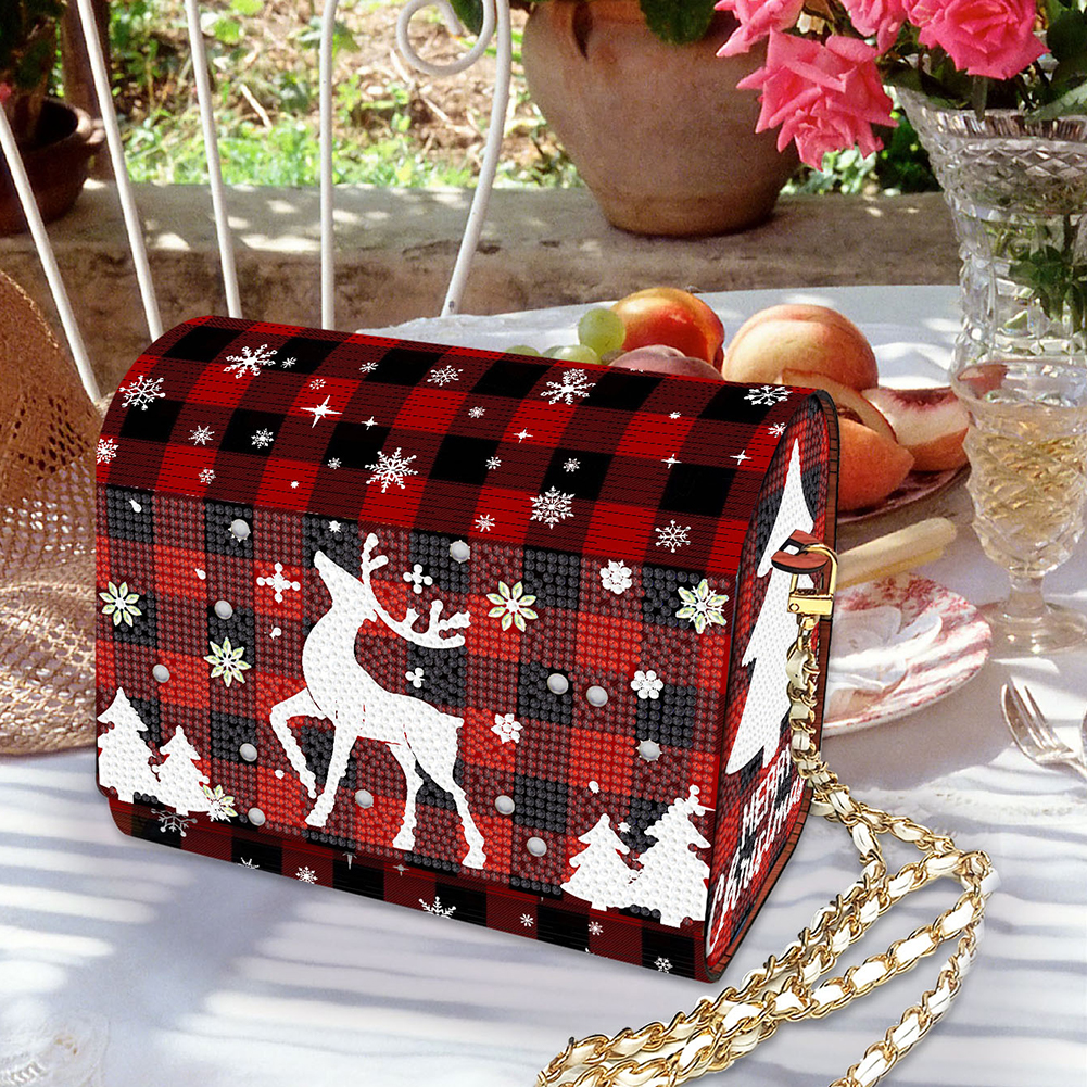 DIY Red Fawn Diamond Art Wooden Coin Pouch with Chain 5D Diamond Painting Purse