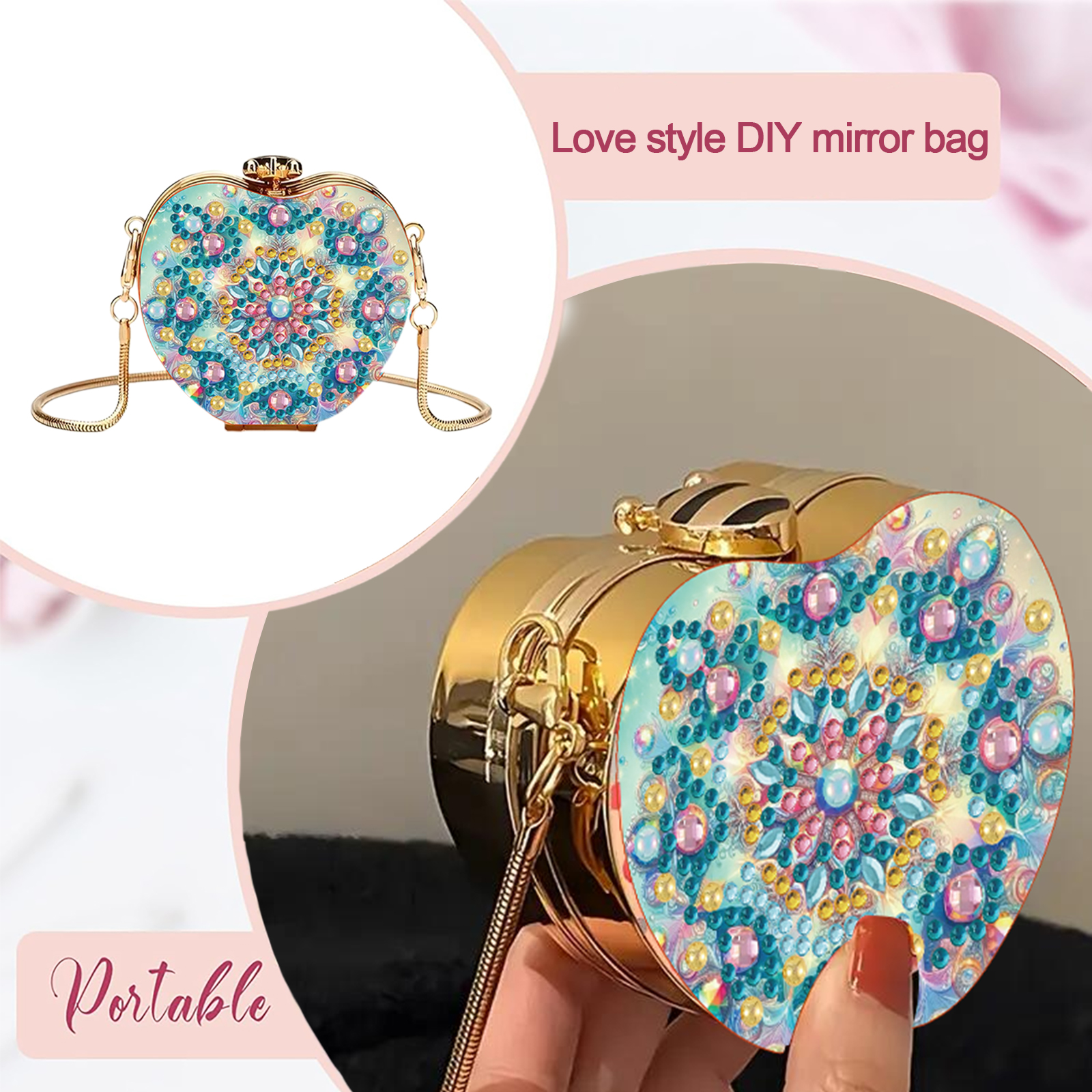 The DIY Diamond Painting Mirror Clutch is a craft product that combines practicality with artistic appeal, designed specifically for users who enjoy DIY projects and personalized customization.