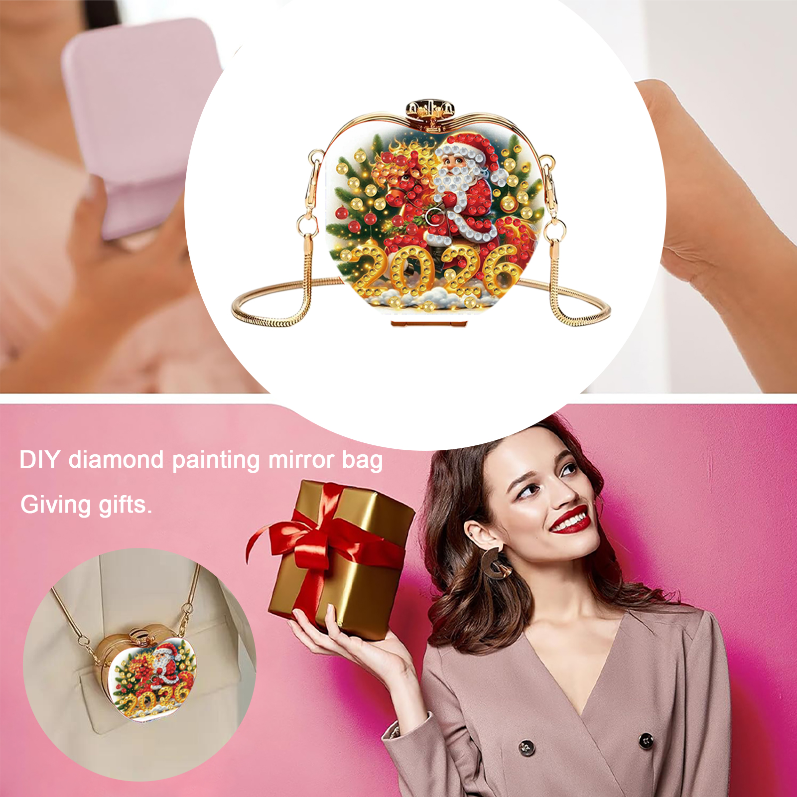 Santa Claus 2026 DIY Acrylic Love Diamond Painting Coin Purse w/ Chain for Women