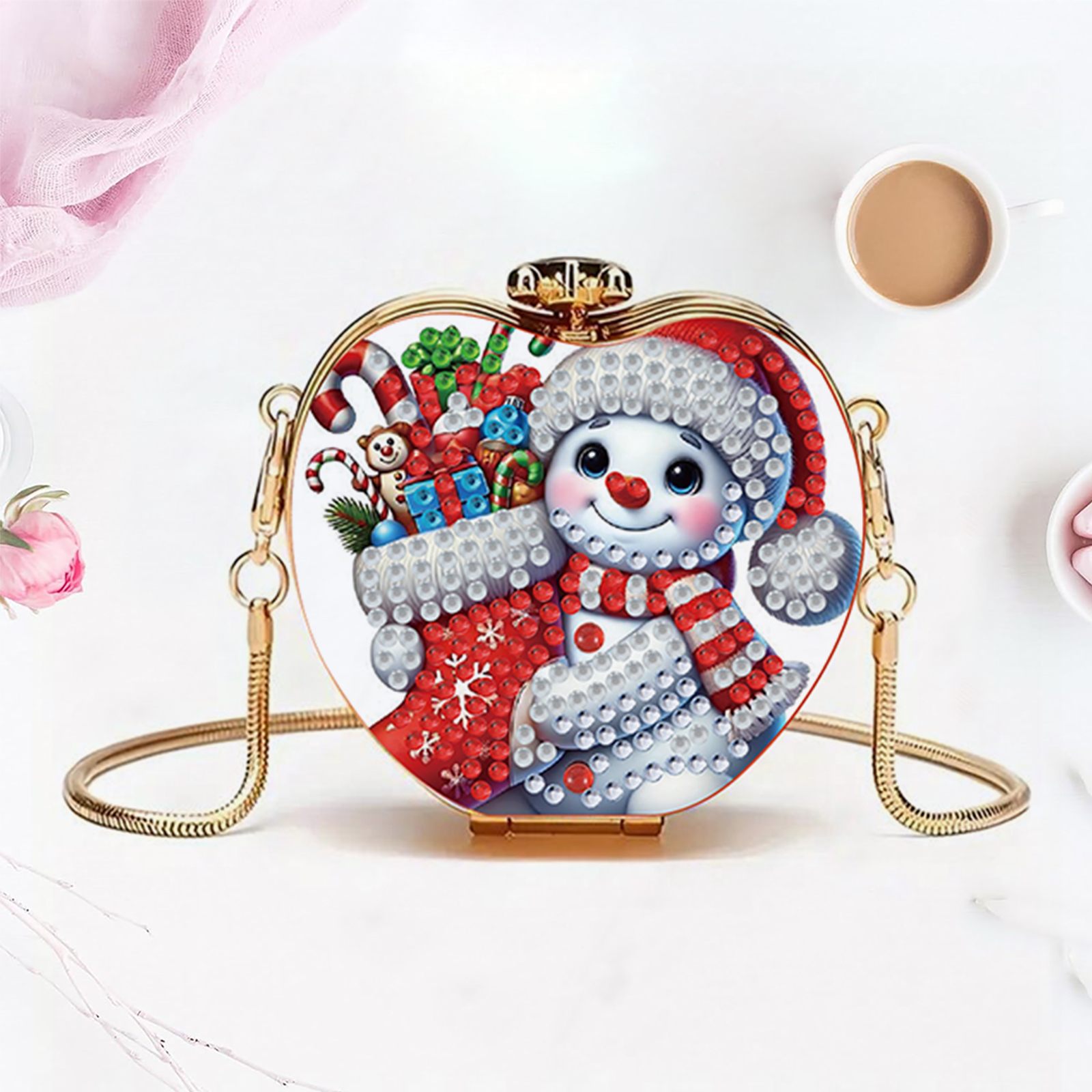 Snowman DIY Acrylic Love Art Diamond Painting Coin Purse with Chain for Women
