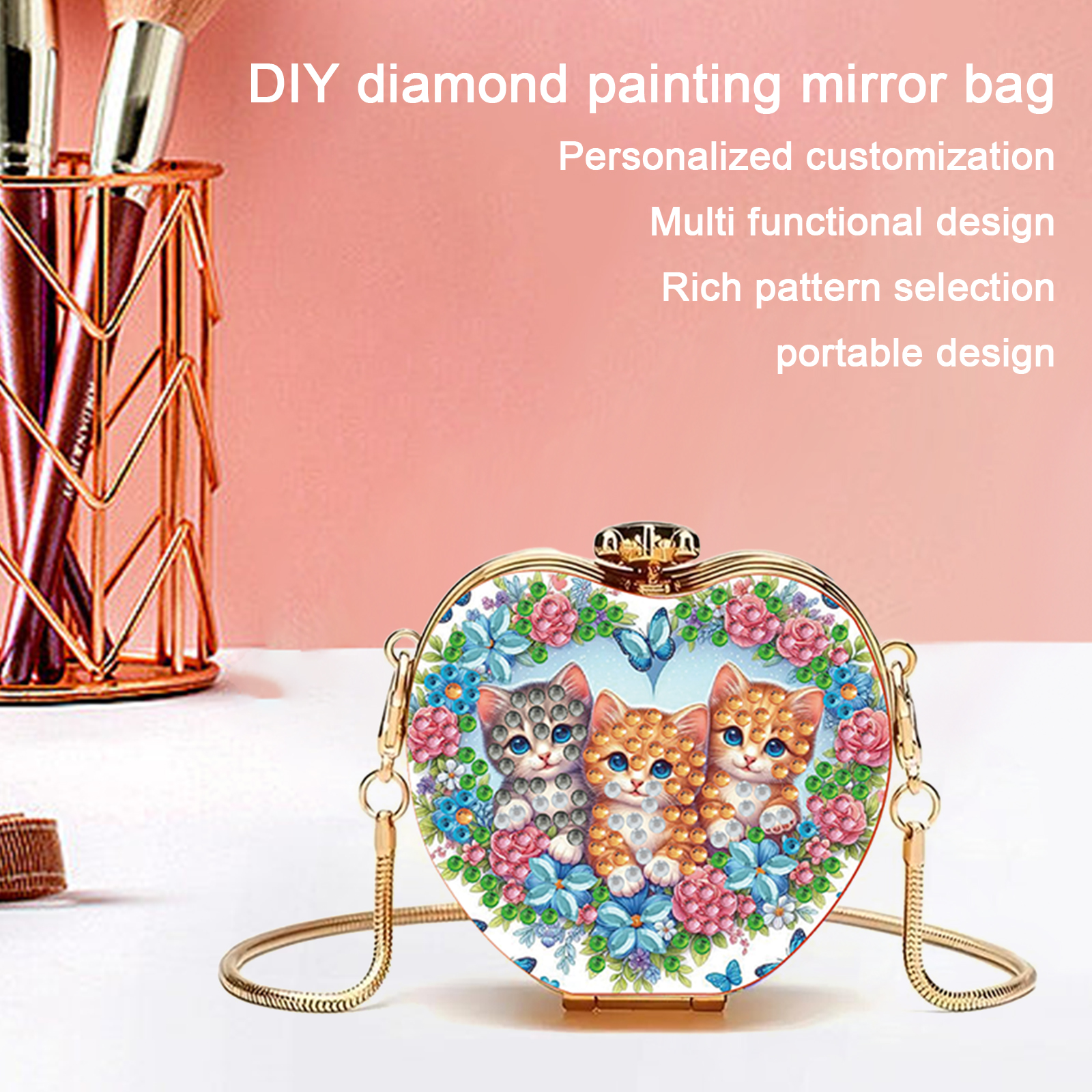 The DIY Diamond Painting Mirror Clutch is a craft product that combines practicality with artistic appeal, designed specifically for users who enjoy DIY projects and personalized customization.