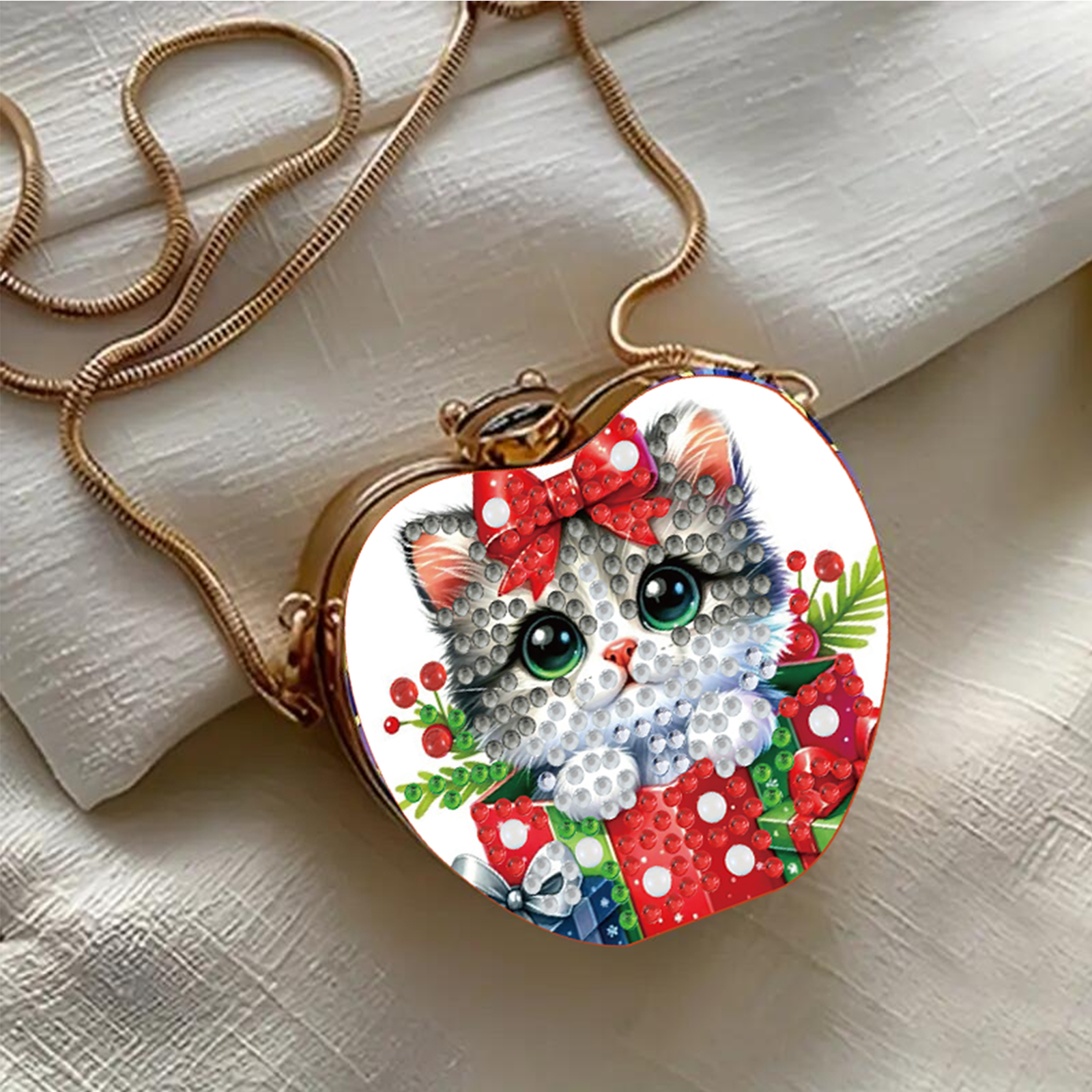 Xmas Cat DIY Acrylic Love Art Diamond Painting Coin Purse with Chain for Women