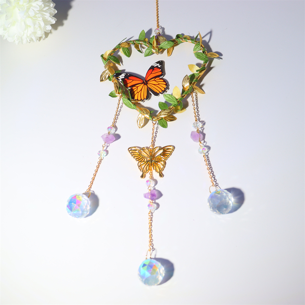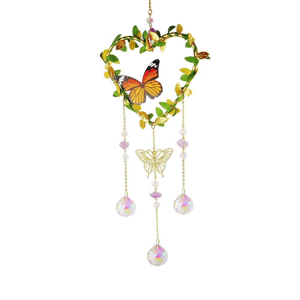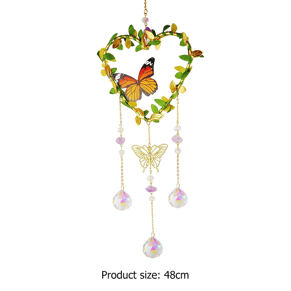 Crystal Wind Chimes Butterfly Star Moon Love Heart Prisms Light Catcher Windbell Hanging Ornaments Window Curtains Pendant Home Garden Bedroom Decorations Gifts