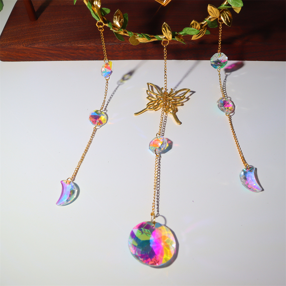 Crystal Wind Chimes Butterfly Star Moon Love Heart Prisms Light Catcher Windbell Hanging Ornaments Window Curtains Pendant Home Garden Bedroom Decorations Gifts