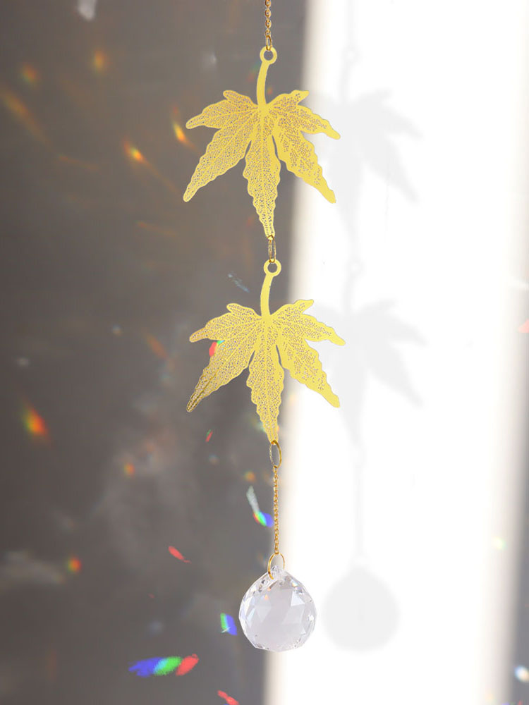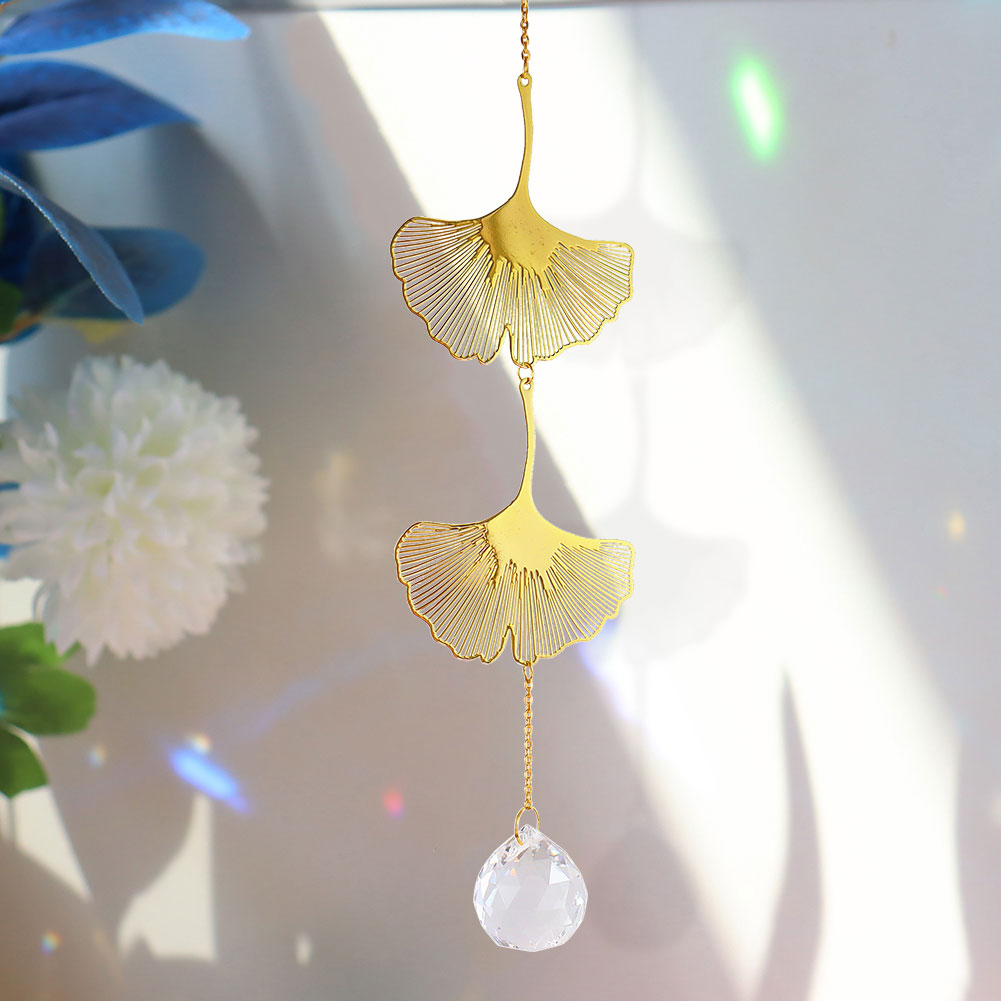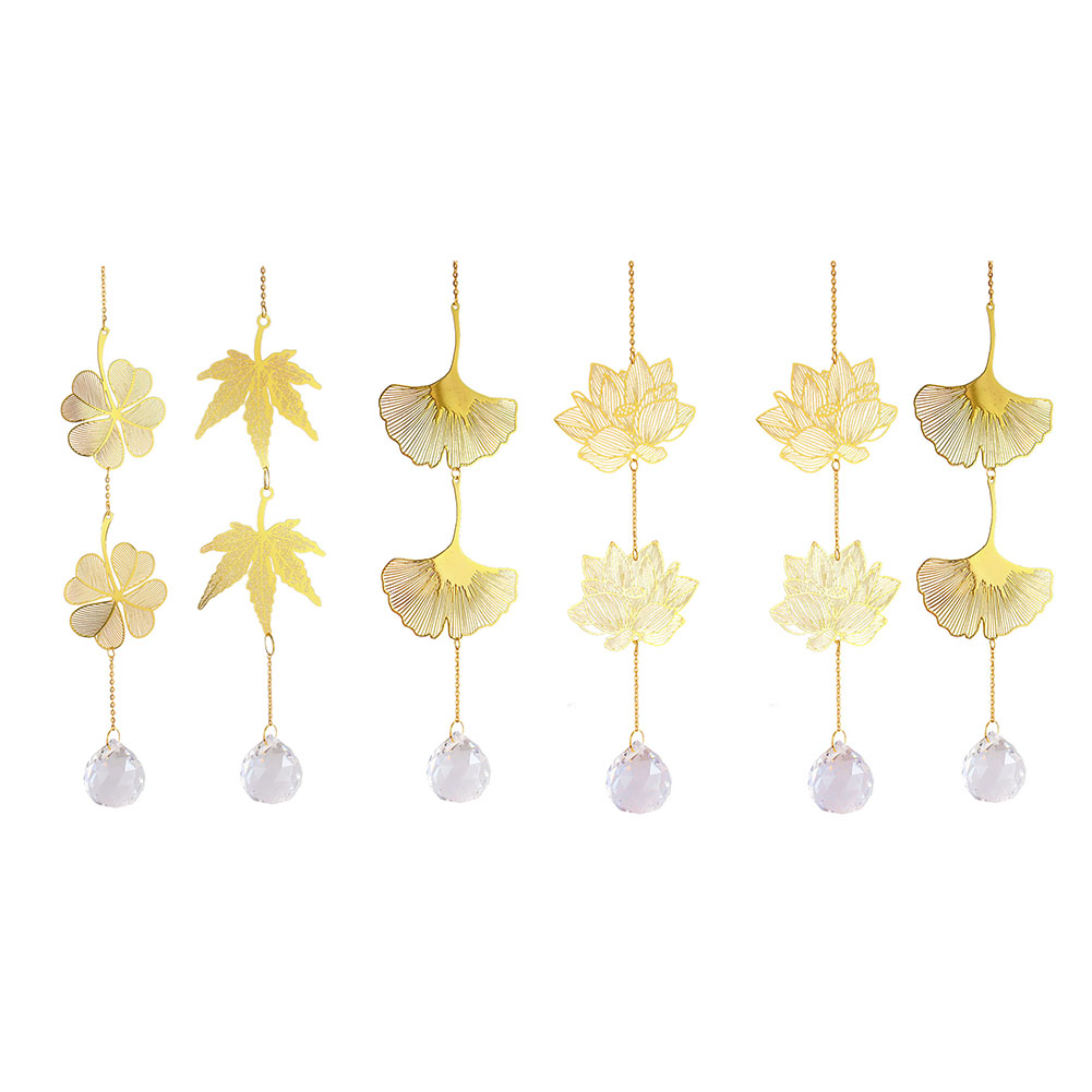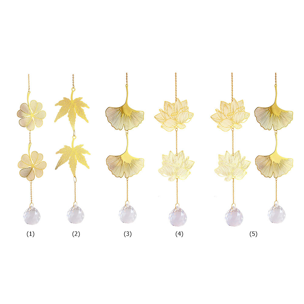 Crystal Wind Chime Prism Lotus Ginkgo Four Leaves Dream Catchers Curtain Wind Bells Hanging Ornament Home Room Garden Wall Window Door Chandelier Decoration