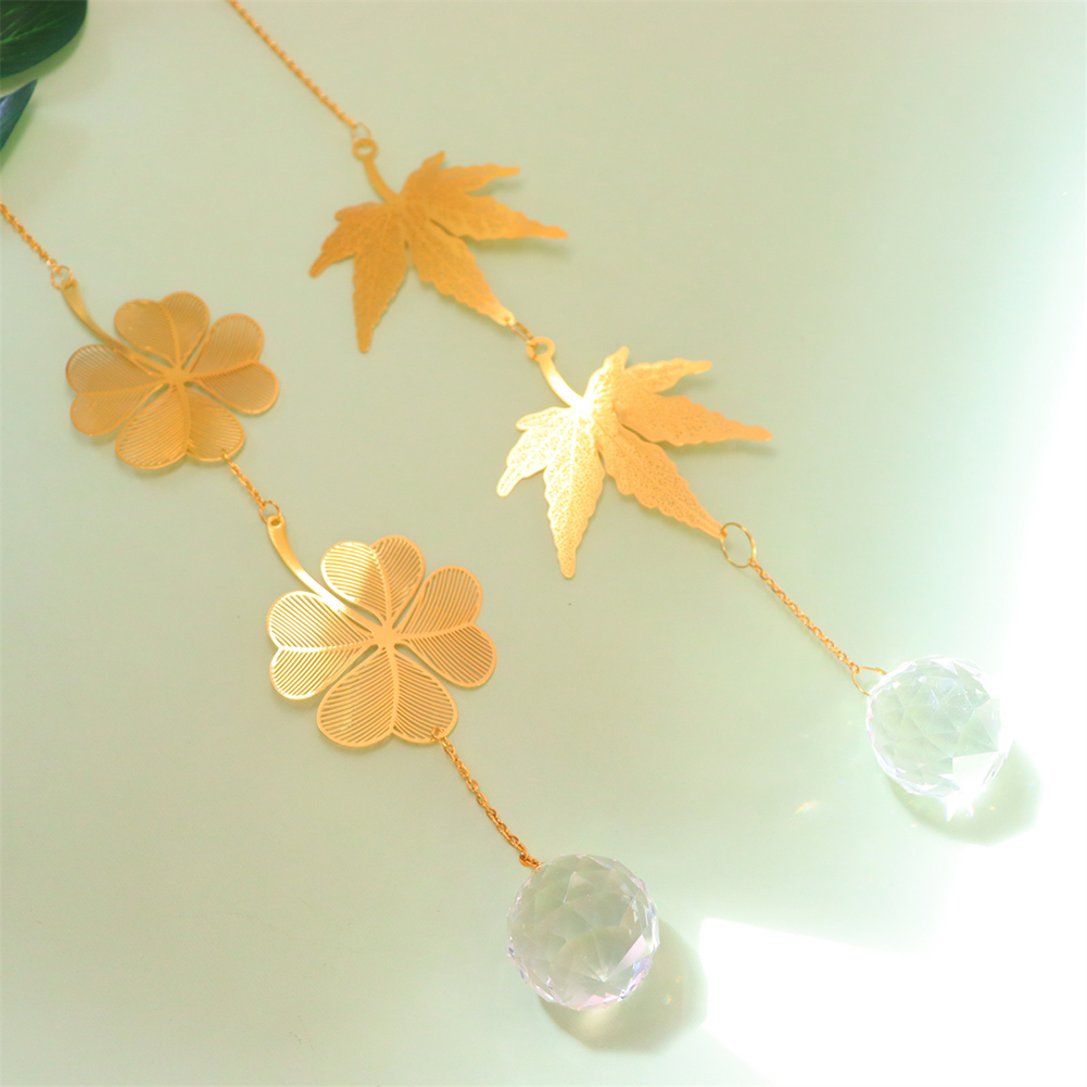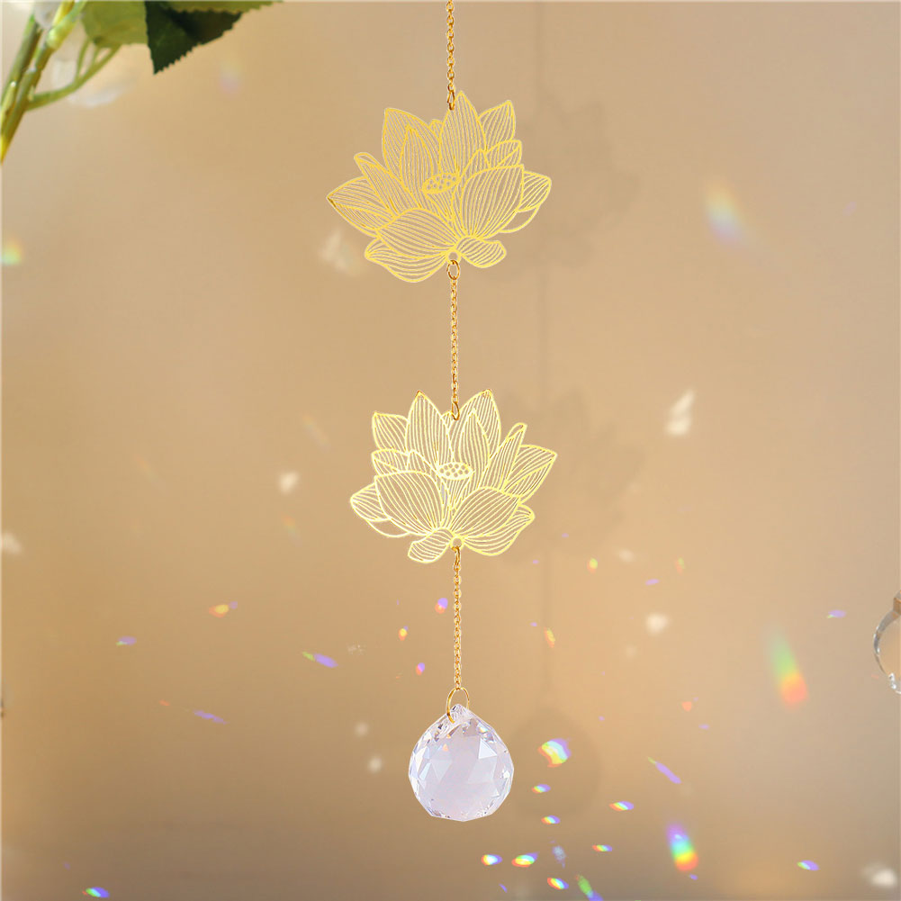 Crystal Windchime Lotus Ginkgo Four Leaf Dream Catchers Windbell Home Decor