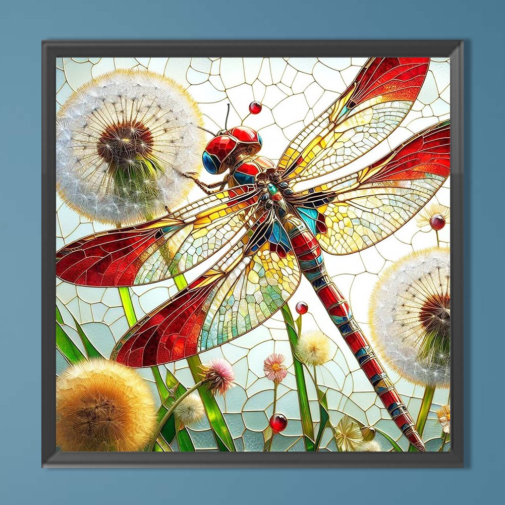 Diamond Painting - Full Round Drill - Dragonfly Dandelion(Canvas|40*40cm)
