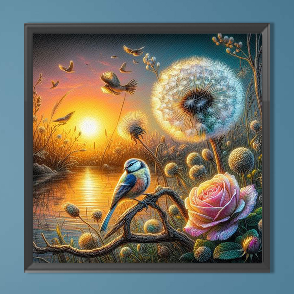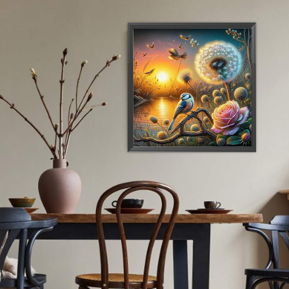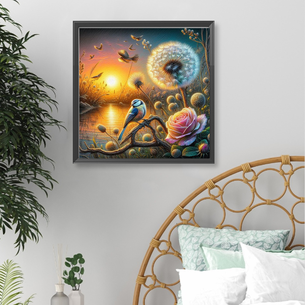Diamond Painting - Full Round Drill - Rose Dandelion Bird(Canvas|40*40cm)