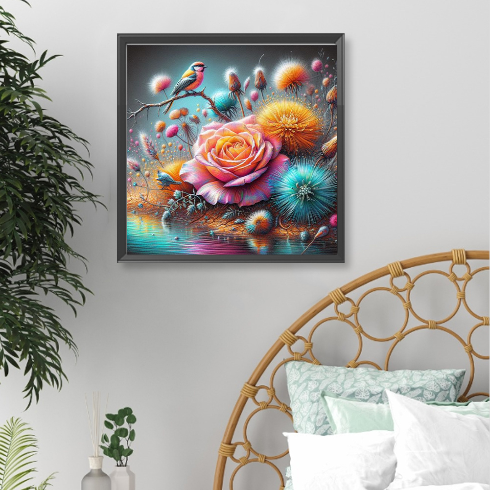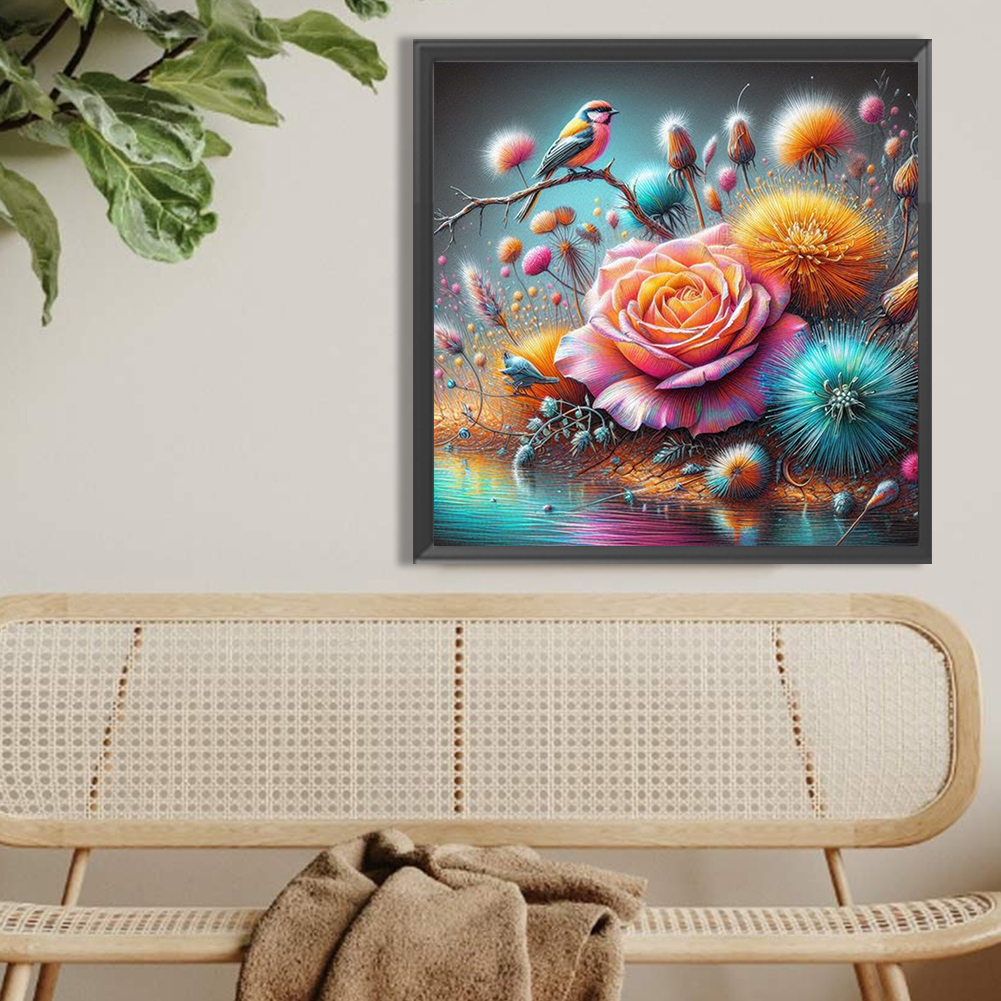 Diamond Painting - Full Round Drill - Rose Dandelion Bird(Canvas|40*40cm)