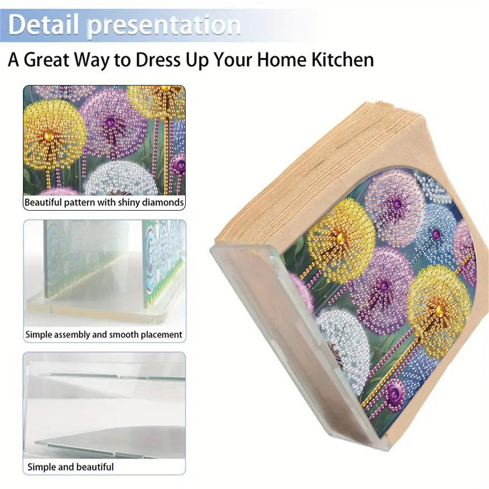 DIY Dandelion Acrylic Diamond Painting Napkin Rack Diamond Art Paper Towel Holder