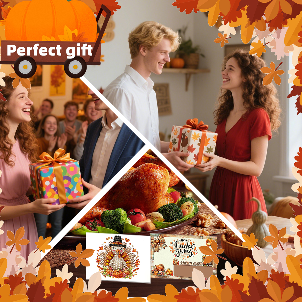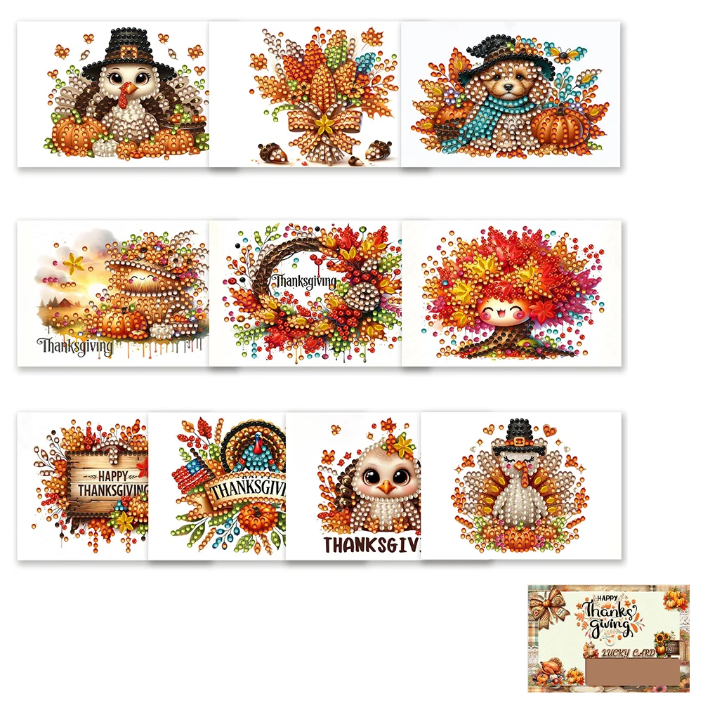 10pcs DIY Diamond Painting Crystal Scratch Card Party Gift Card (Thanksgiving)