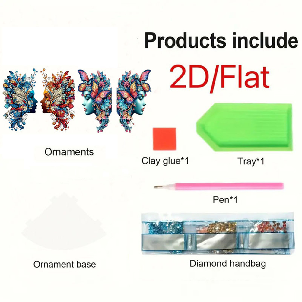 2pcs 2D Flat DIY Diamond Art Pendant DIY Home Decor Hanging Charm (Butterfly)