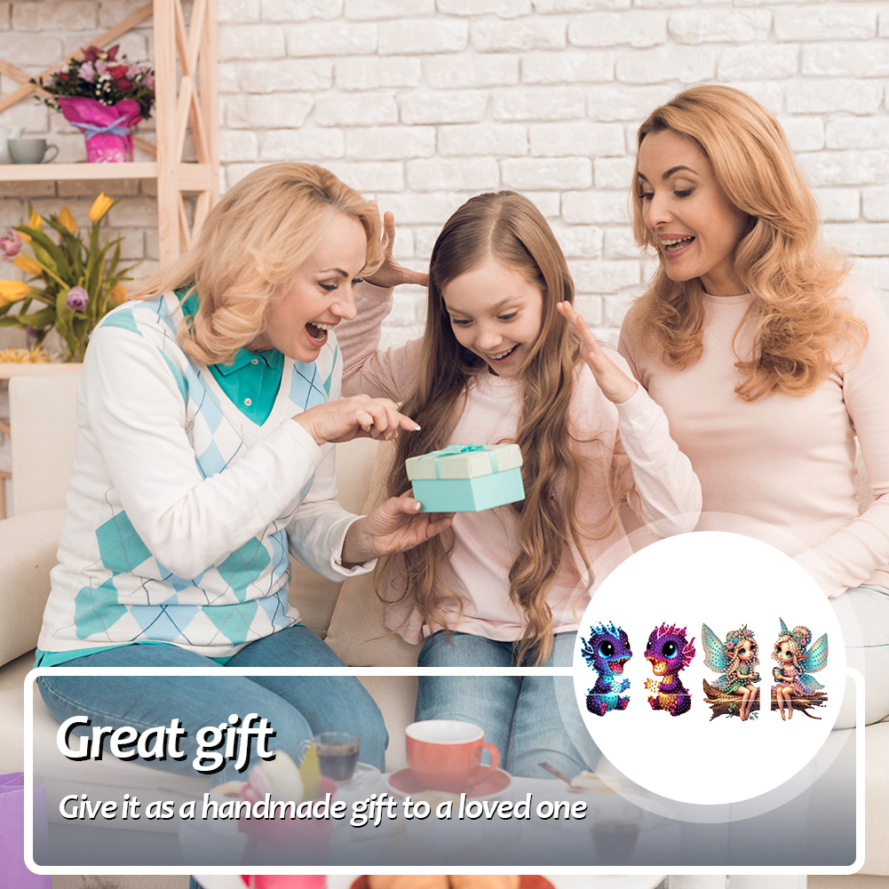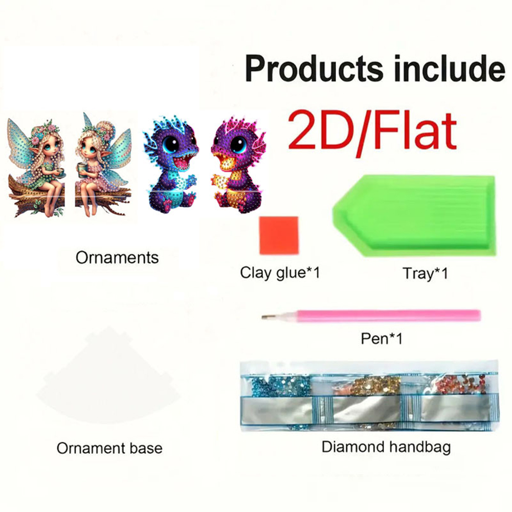 2pcs 2D Flat DIY Diamond Art Pendant DIY Home Decor Hanging Charm Decor (Fairy)