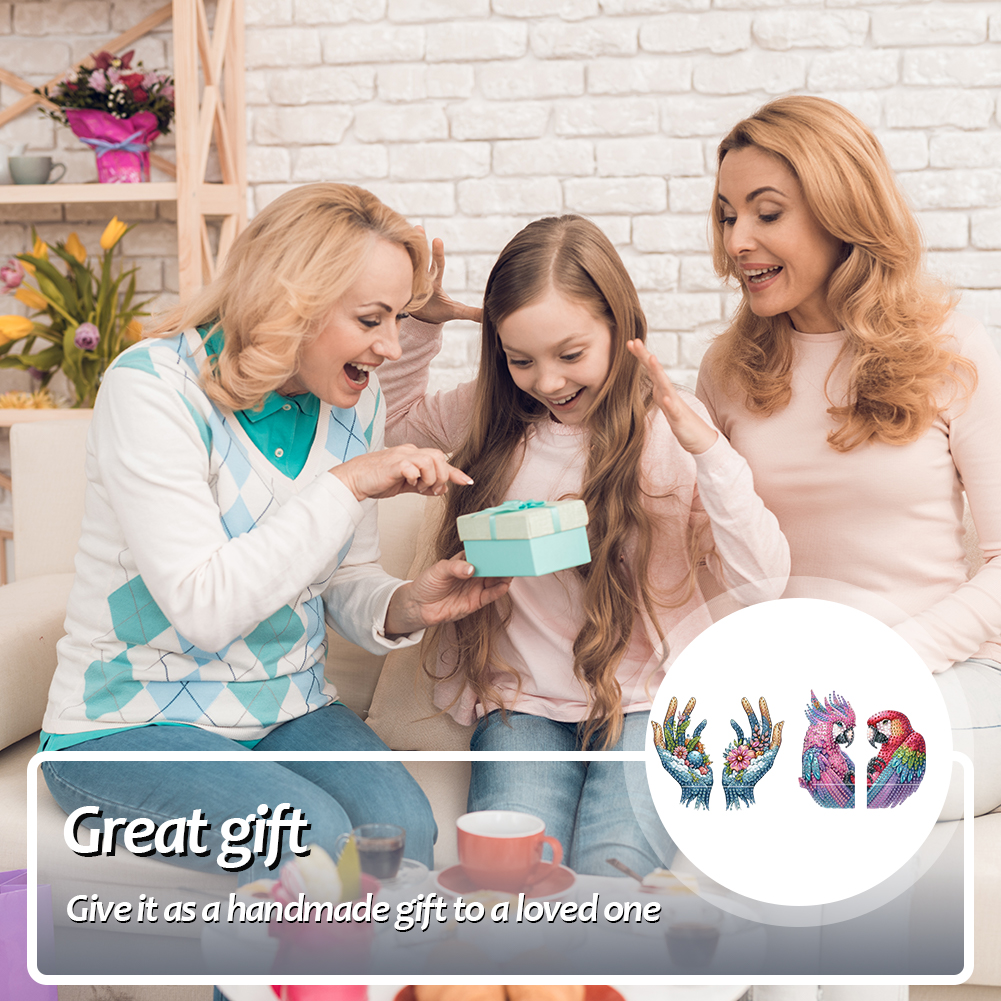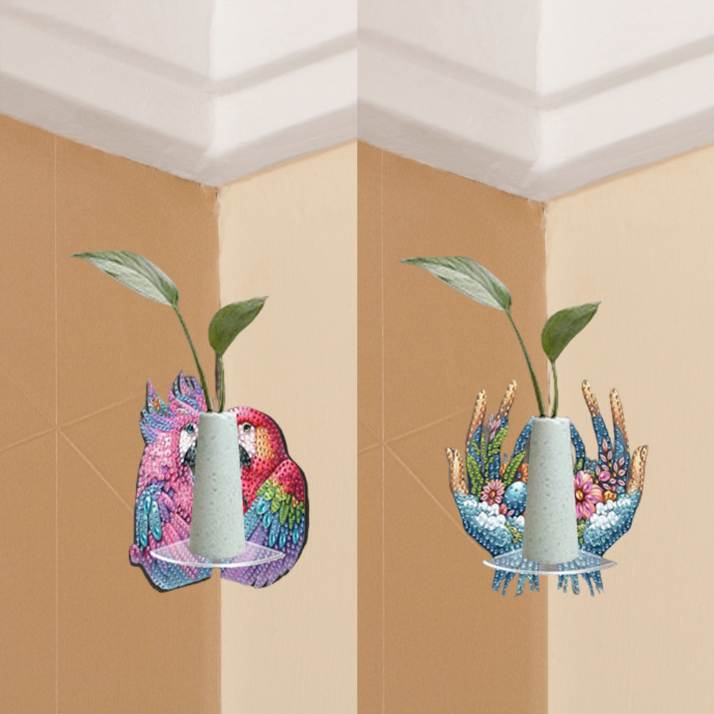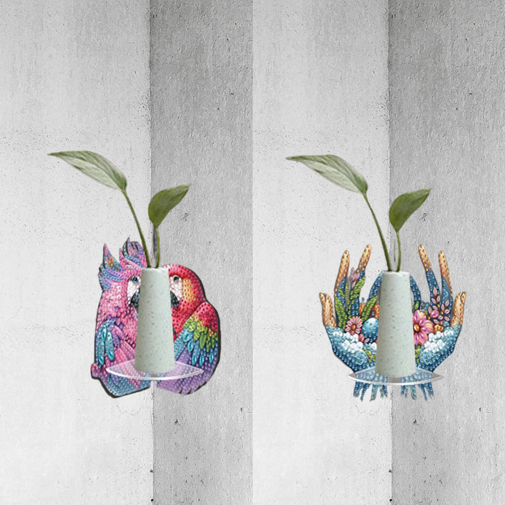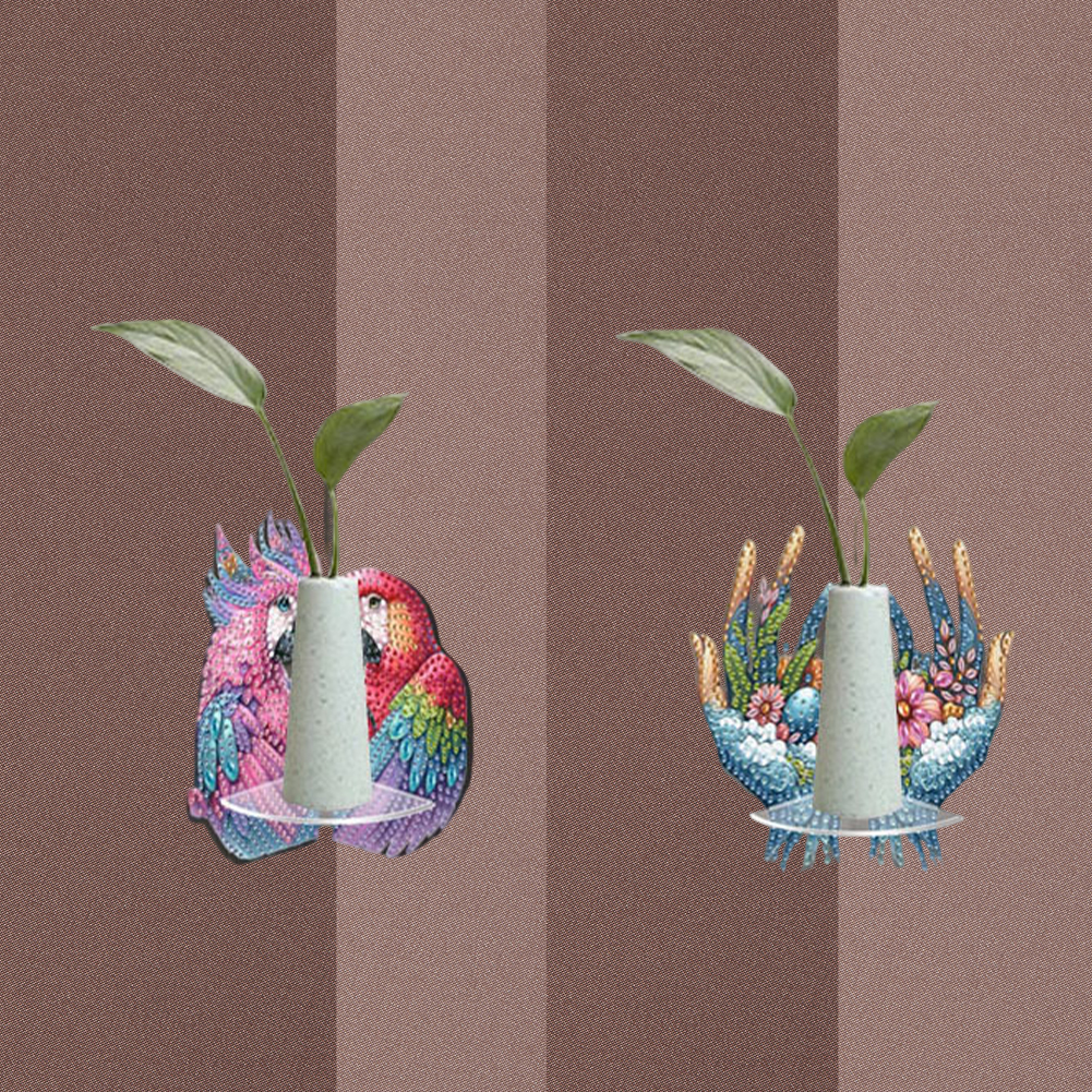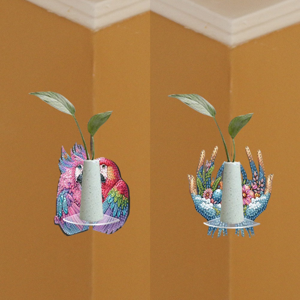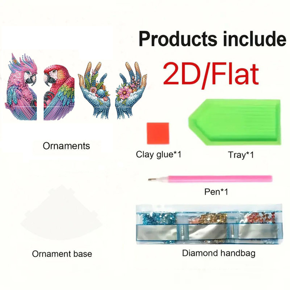2pcs 2D Flat DIY Diamond Art Pendant DIY Home Decor Hanging Charm Decor (Parrot)