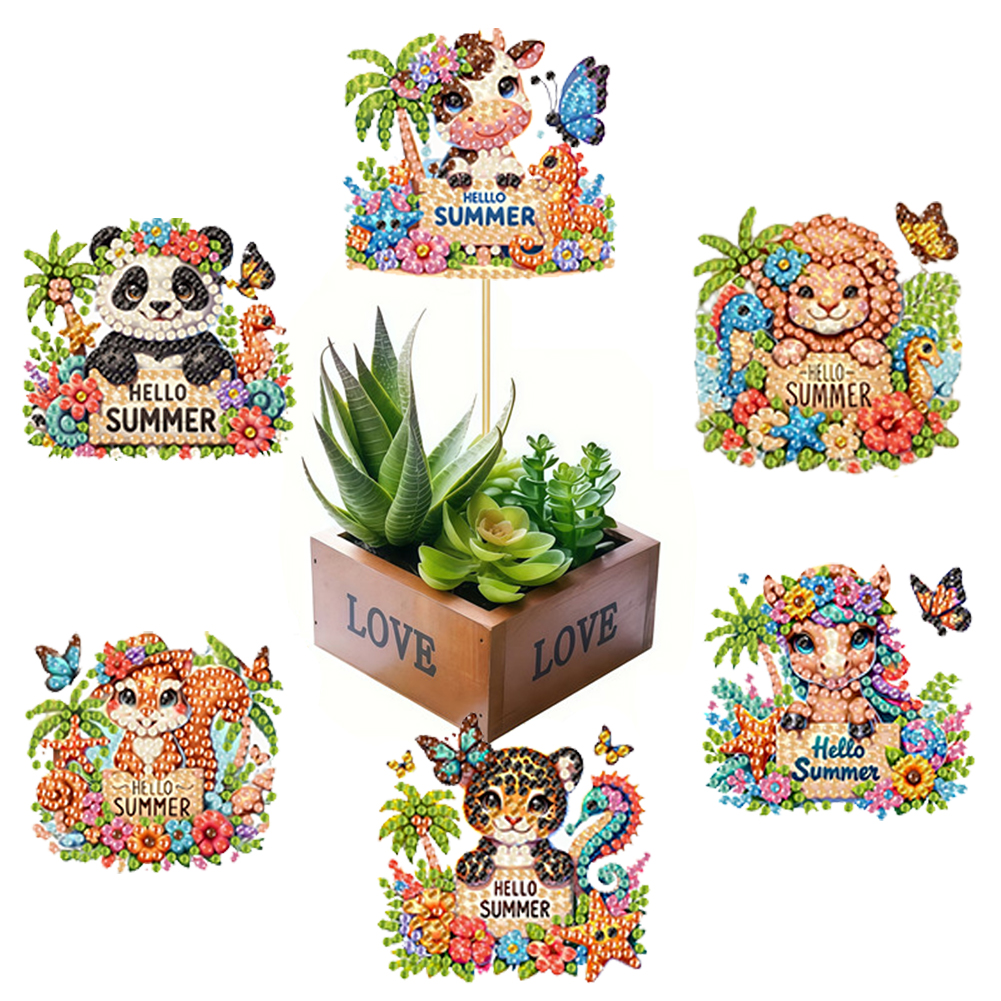 6Pcs DIY Stakes Diamond Painting Kits Diamond Art Kits (Summer Animals)