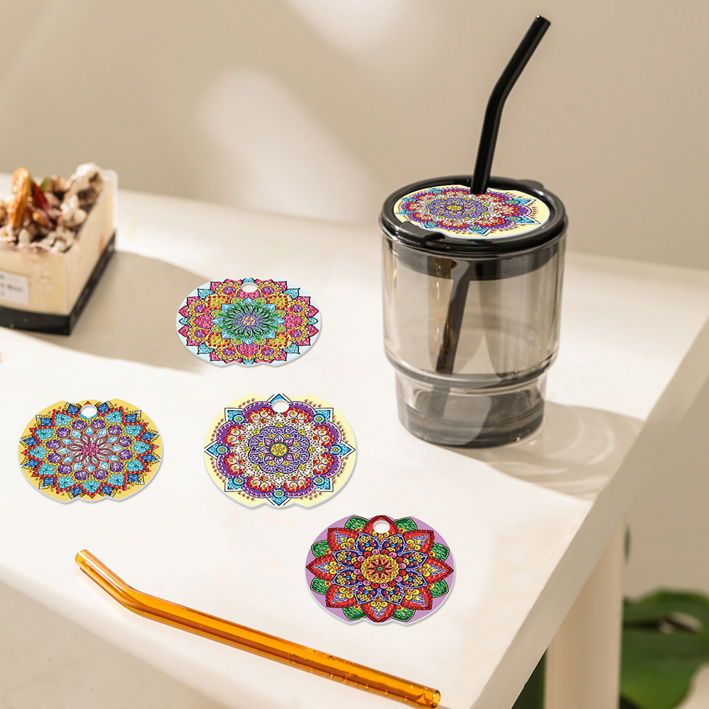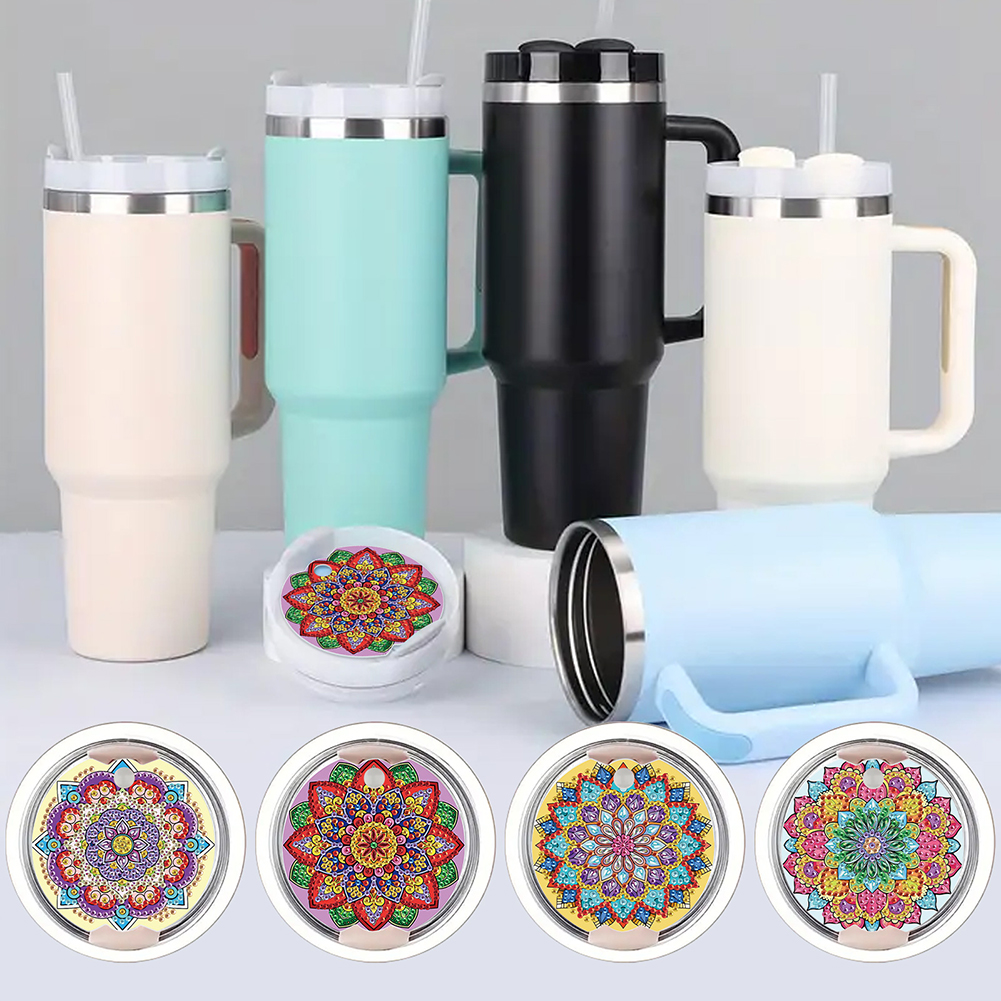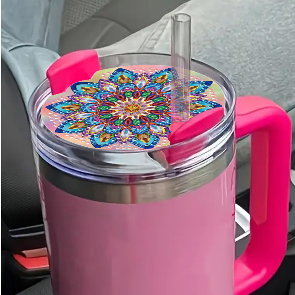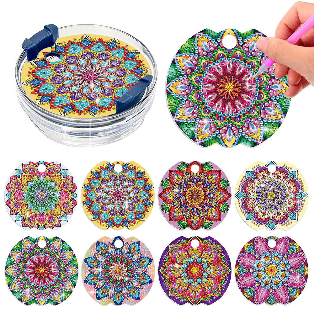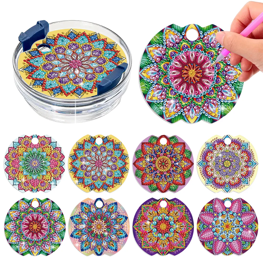 8pcs Mandala DIY Diamond Art Cup Lid Accessories Bling Tumbler Lid Plate
