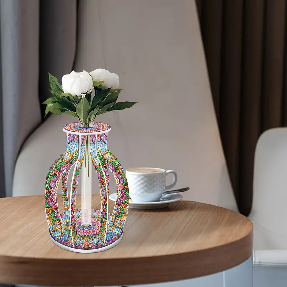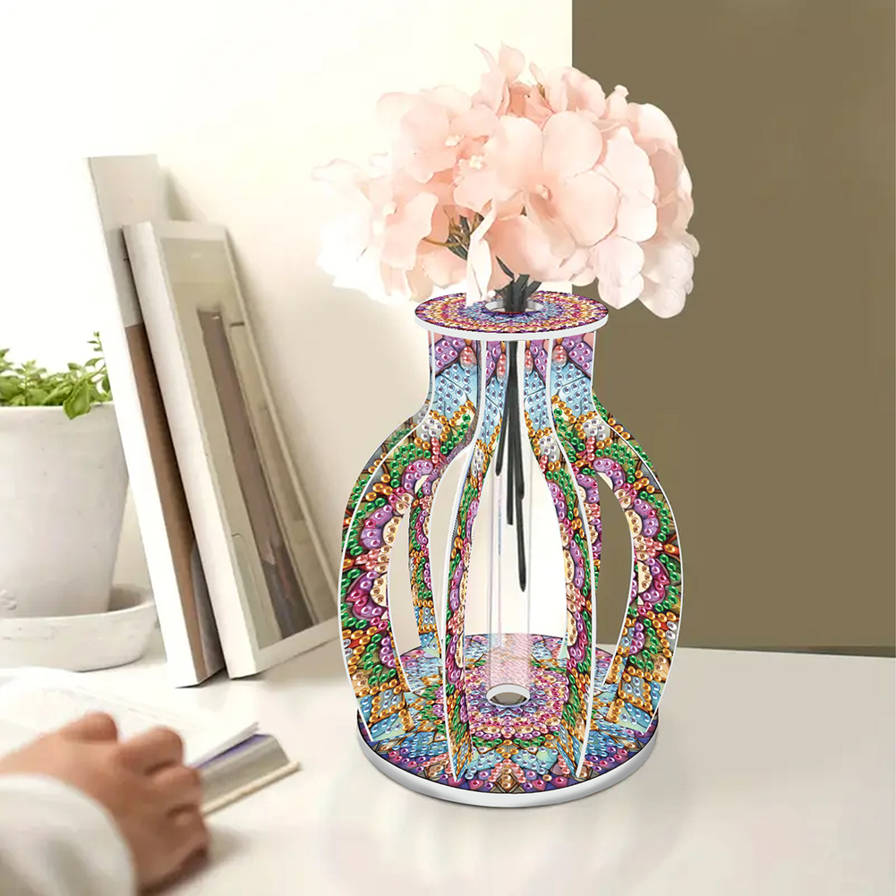 Acrylic Wood Mandala 5D DIY Diamond Painting Flower Vase for Home Office Decor