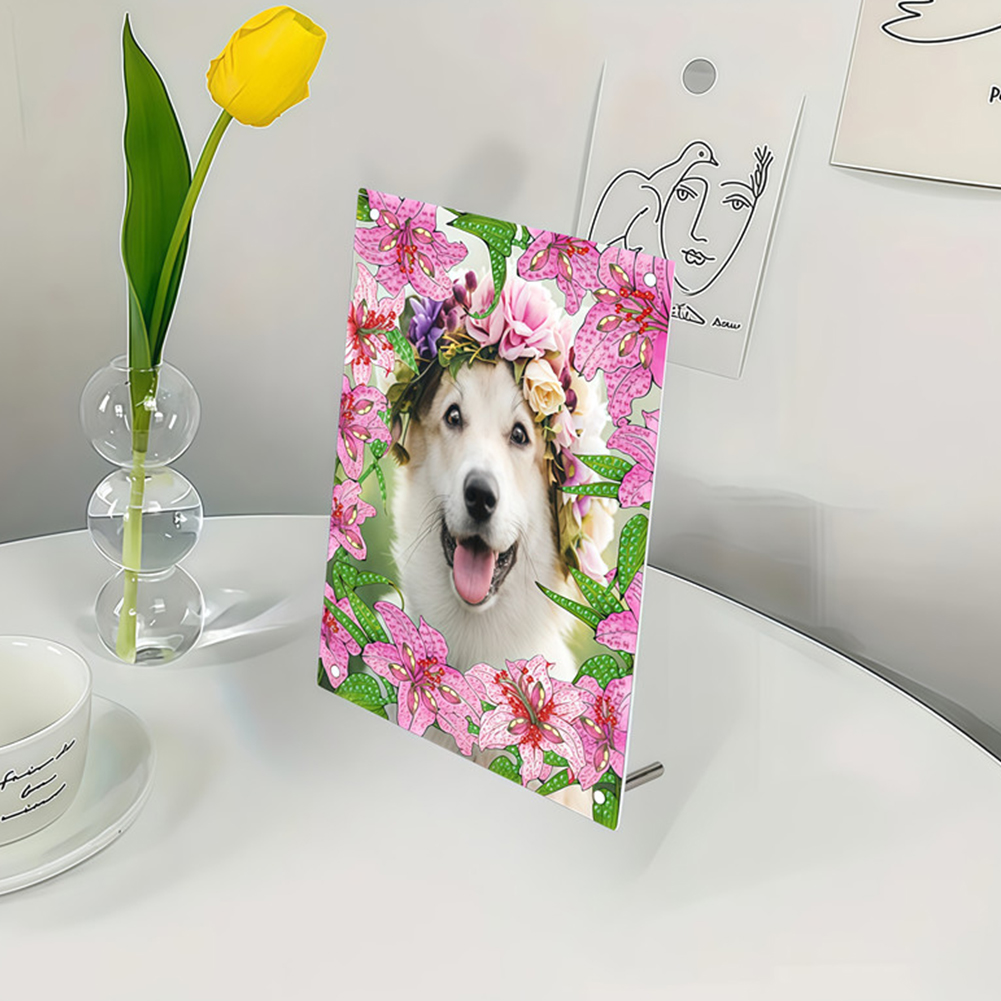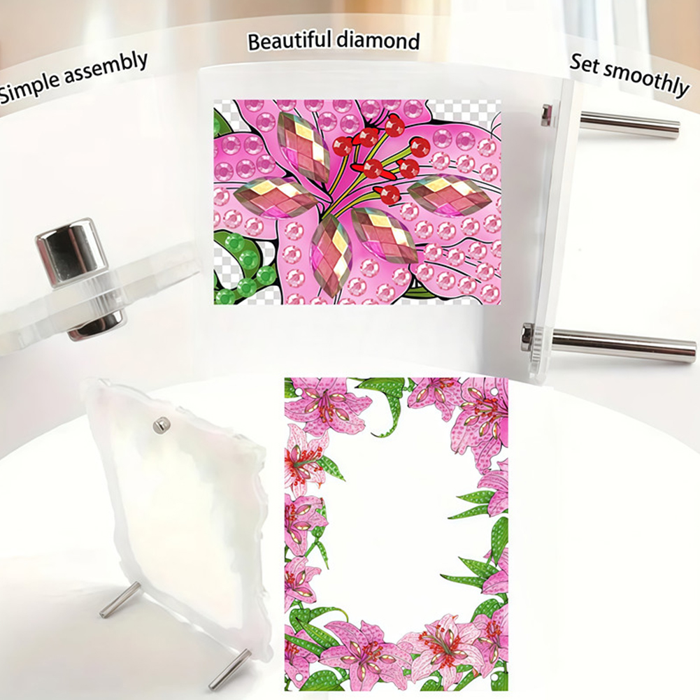 Special Shape Pink Lily Table Top Diamond Painting Frame Kits for Families
