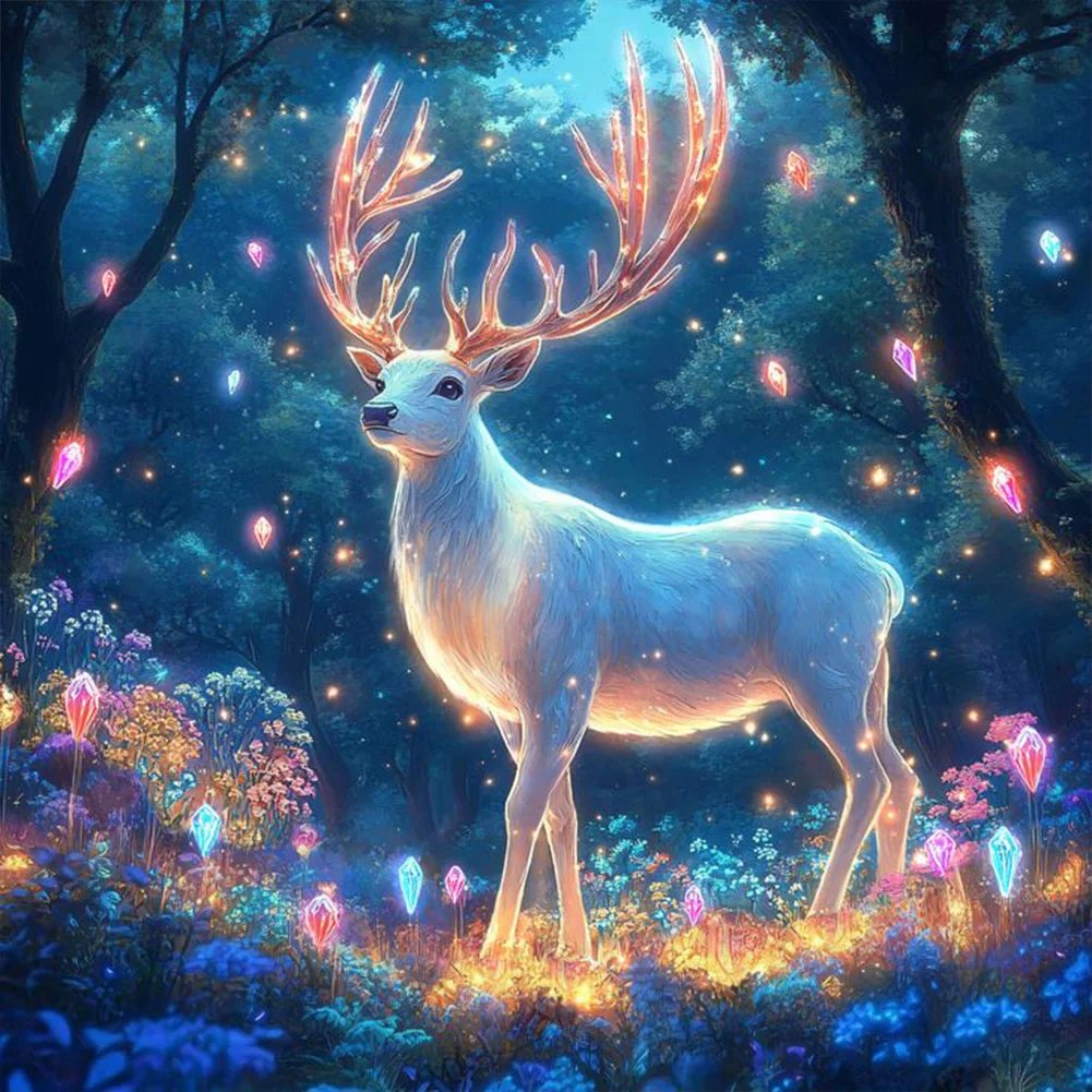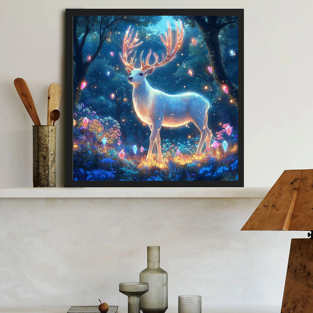 Diamond Painting - Full Round Drill - Spiritual Deer In Forest(Canvas|30*30cm)